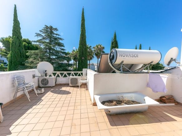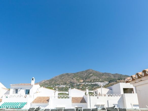 Rooftop terrace of 35 m² with open views of the Sierra de Mijas and the urbanisation’s green areas.