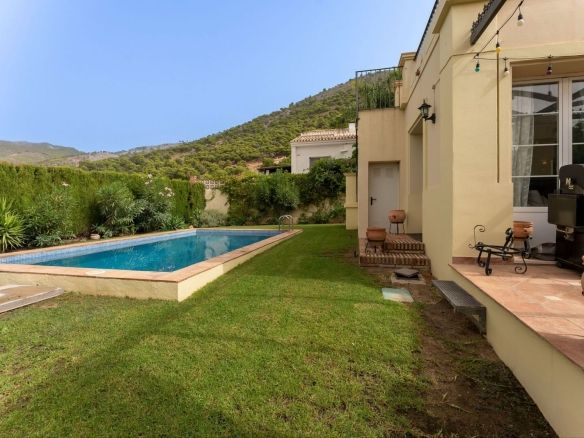 Discover this charming Mediterranean villa, perfectly positioned on a sought-after urbanisation just minutes from the picturesque village of Mijas Pueblo and the coast. Combining traditional style with modern comfort, this home is ideal as a permanent residence, family retreat, or holiday getaway. Inside, the villa offers 3 bedrooms and 2 bathrooms (including an en suite), plus a convenient guest WC. The spacious open-plan kitchen, dining, and living area is the heart of the home, featuring a character fireplace and direct access to a private south-facing terrace overlooking the pool and gardens.