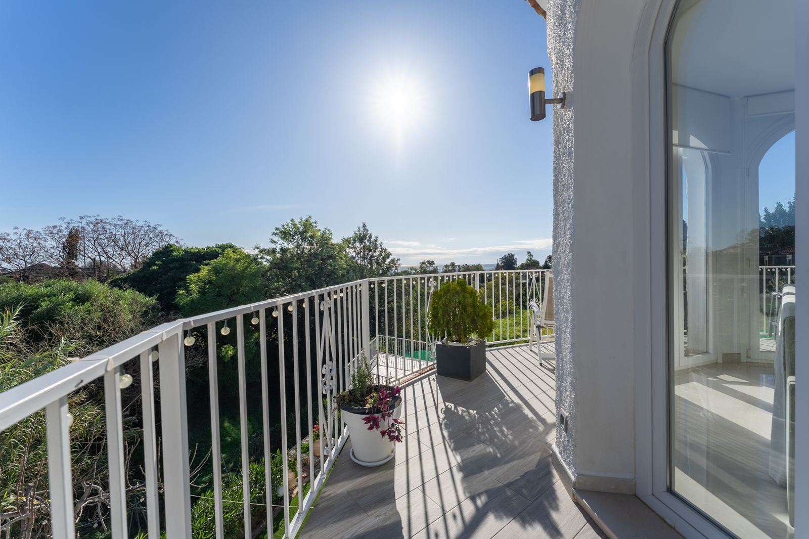 The bright and airy living room features floor-to-ceiling windows that flood the space with natural light and showcase breathtaking views. Next to it is a newly renovated, fully fitted kitchen with an island and a charming dining area, ideal for memorable gatherings. A cozy sunroom extends from the kitchen, providing a perfect spot to enjoy the stunning surroundings year-round. From here, step out onto a wrap-around terrace—perfect for relaxing while taking in the panoramic scenery.