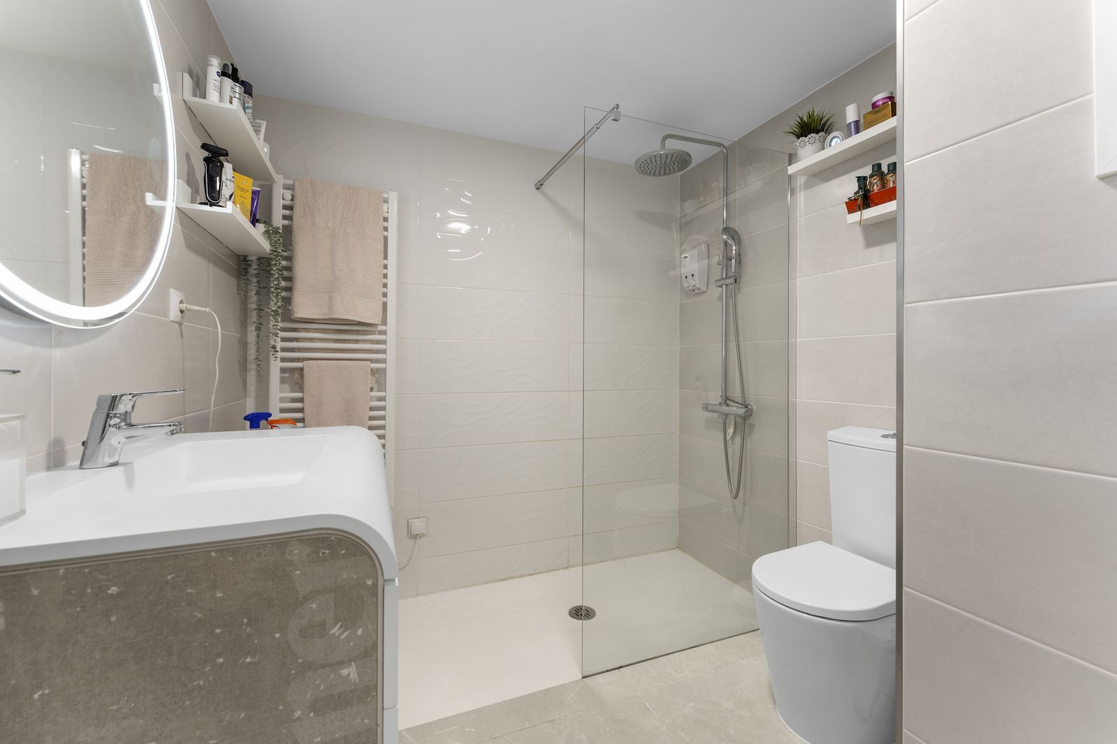 The lower level boasts a private master suite with a stylish bathroom, fitted wardrobes, and a spacious layout offering complete privacy. Nearby, a functional laundry/storage room enhances daily convenience and provides direct access to the garage and outdoor area.