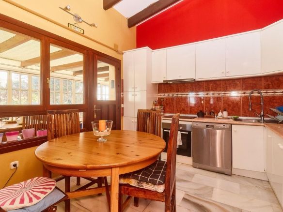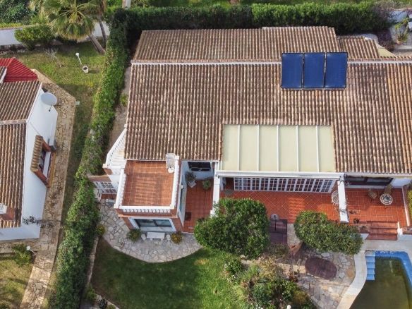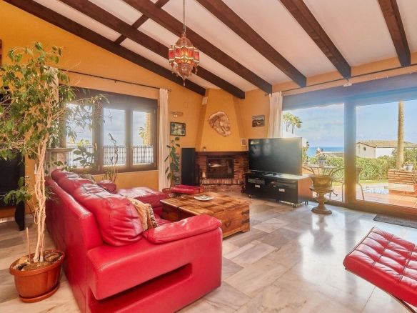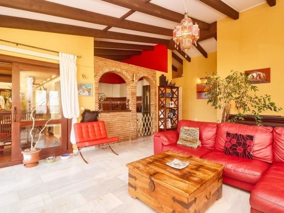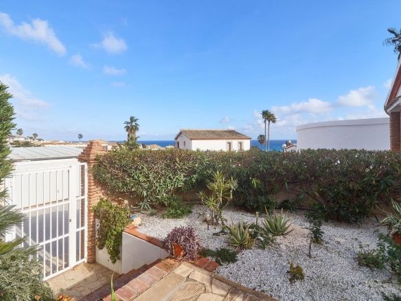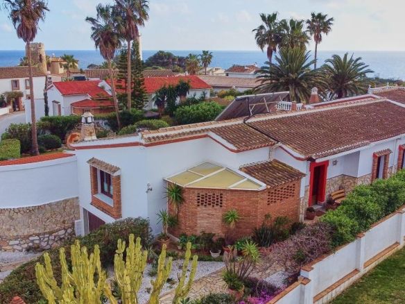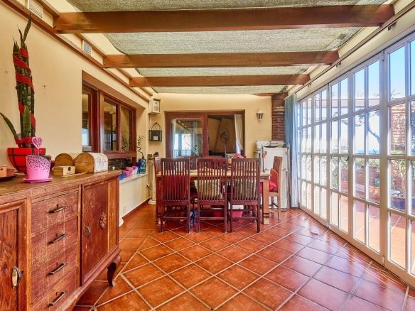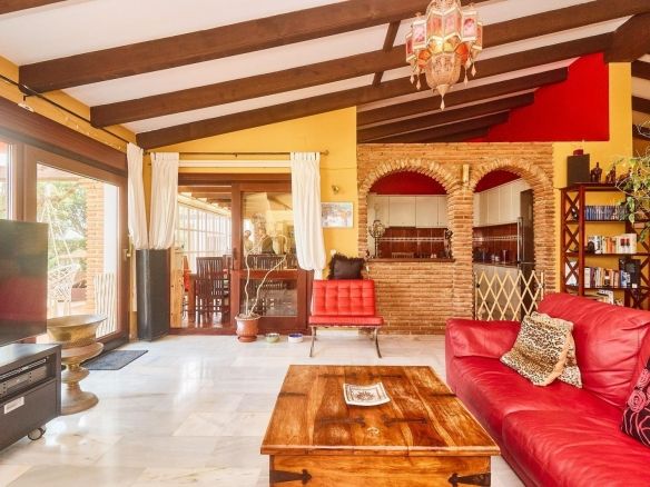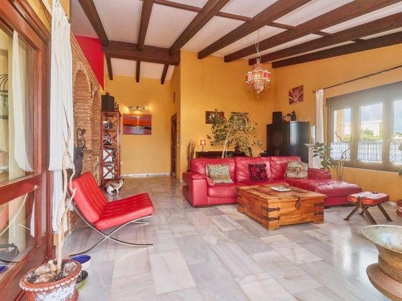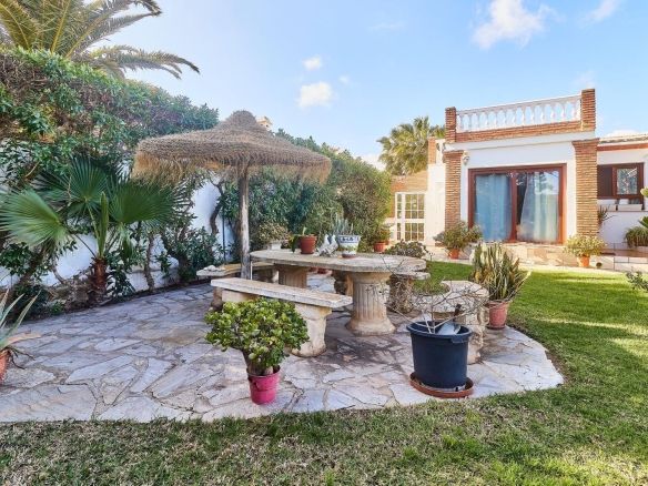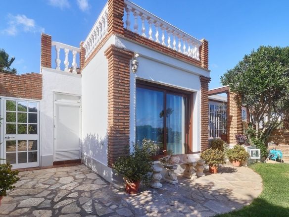 Located in the established urbanization of El Faro, just a few meters from the beach and situated on one of the best plots, offering you stunning panoramic views of the sea and the mountains, is this charming Andalusian-style villa. The property exudes warmth and character, with marble floors, exposed wooden beams and brick arches that enhance its cozy atmosphere.