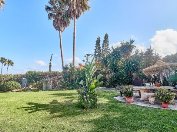 The living area is light and airy, with direct access to a terrace overlooking the beautiful garden and sea views. The feeling of warmth is breathed by fusing the exposed wooden beams with a fireplace, ideal for creating cosy moments.