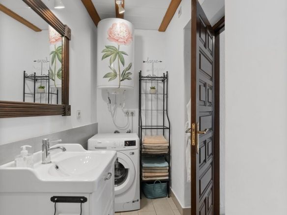 Nuevo Pueblo itself is the picture-book “pueblo blanco”—whitewashed façades, tumbling bougainvillea and cobbled paths—but without the hills: it sits on the edge of Mijas Pueblo, just 700 m or so—an easy eight-minute, level stroll—from the main square with its tapas bars, craft shops and weekly market, and there’s a €1 bus that stops almost outside the gate for beach or airport runs.