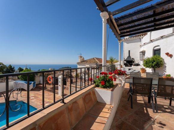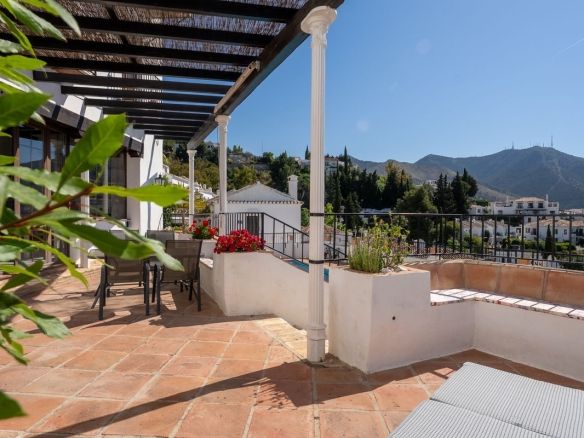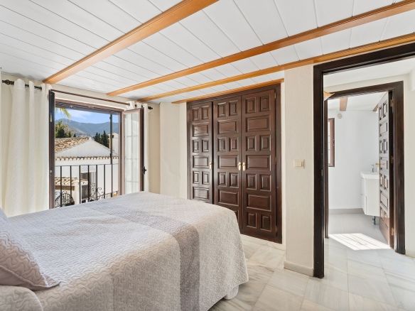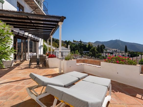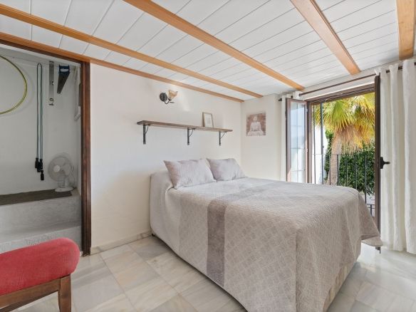 Dream of sipping your morning coffee while the Mediterranean shimmers in front of you? Step onto the 25 m², south-facing terrace of this Nuevo Pueblo townhouse and that’s exactly the start to every day. The space is wide enough for dining and lounging zones, fitted with a built-in stone barbeque, and—best of all—has its own gate that swings straight onto the communal pool deck, so the kids (or the sangria) never have far to travel. From here the sea stretches blue to the horizon, a view shared by the living room thanks to wall-to-wall patio doors.
