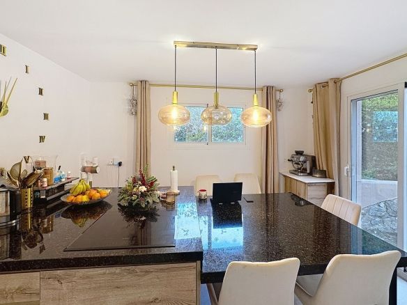 As you enter, you're greeted by an impressive driveway with automatic security gates and ample space for up to three cars. Step into the welcoming entrance hall, complete with a convenient guest bathroom. The spacious living area boasts a charming log burner and offers access to a private sun-drenched terrace, perfect for relaxation. For more formal gatherings, there's a separate dining room.