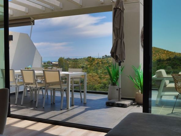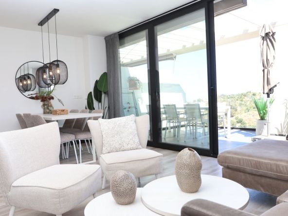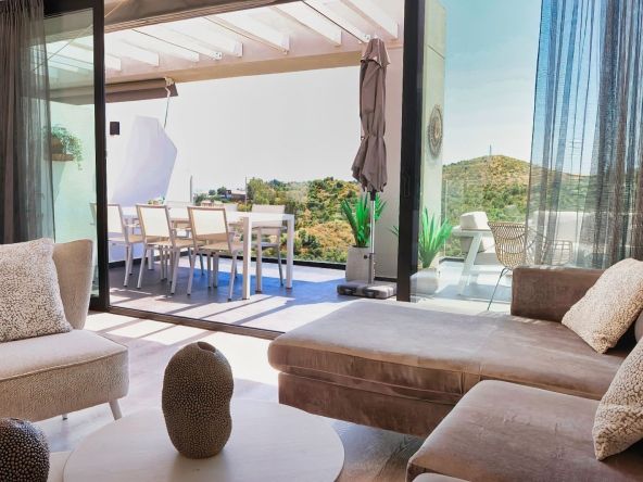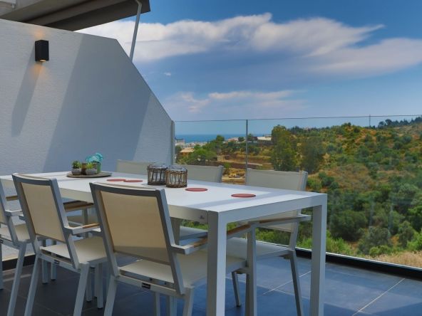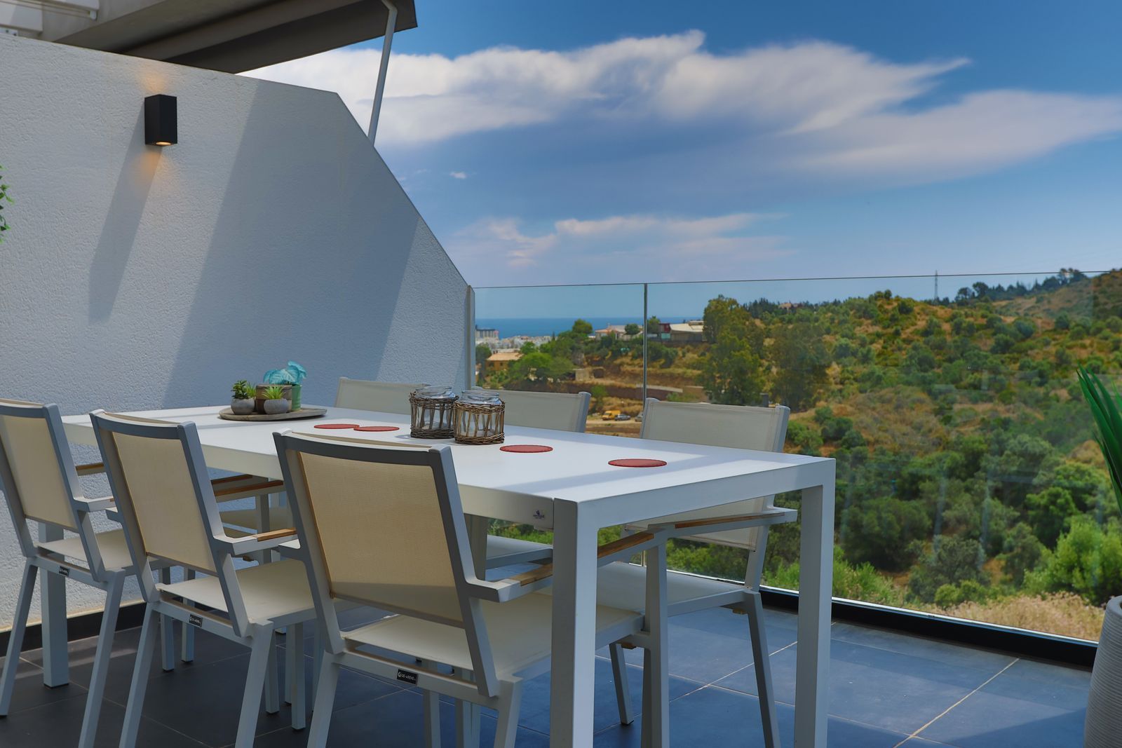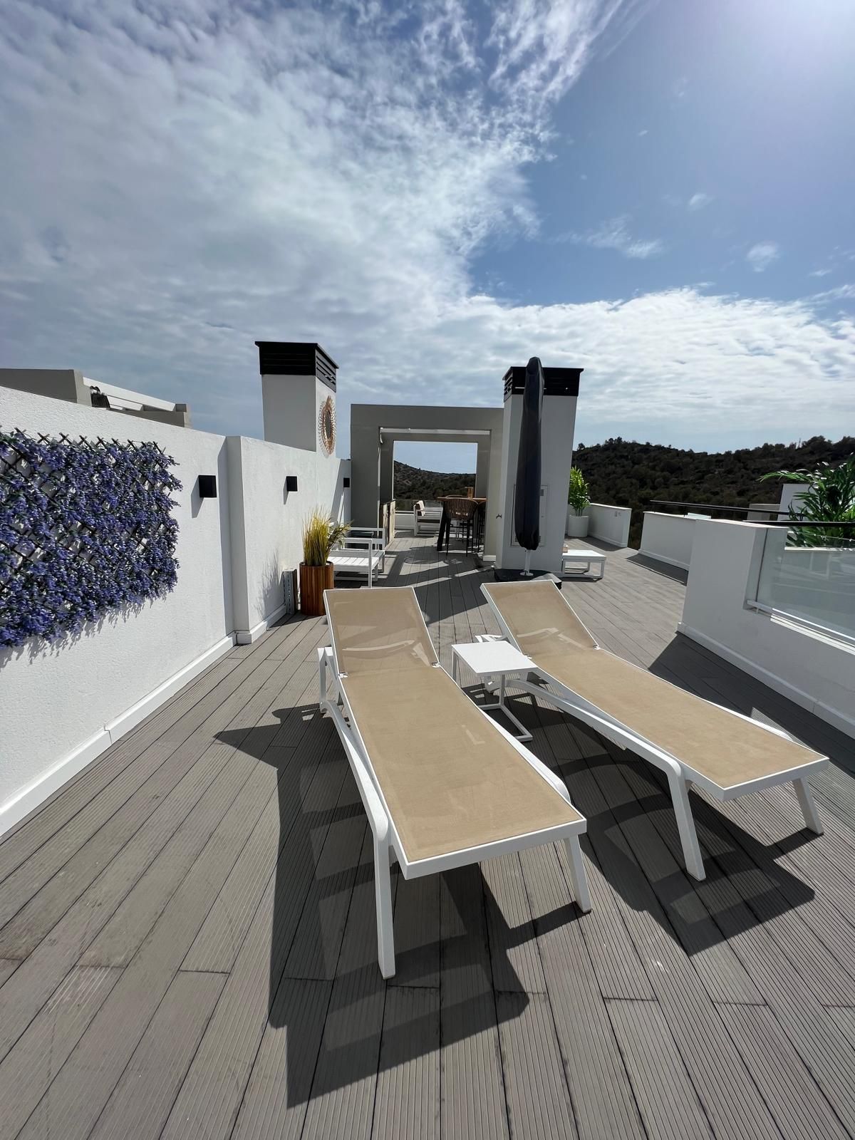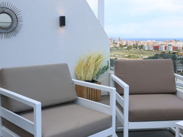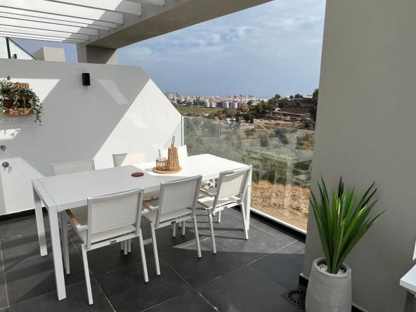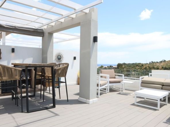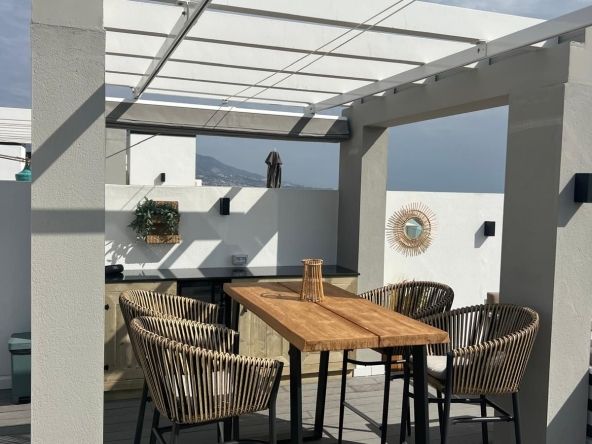 Being a corner penthouse there are only neighbours on one side and the open views to the sea and mountains are panoramic.