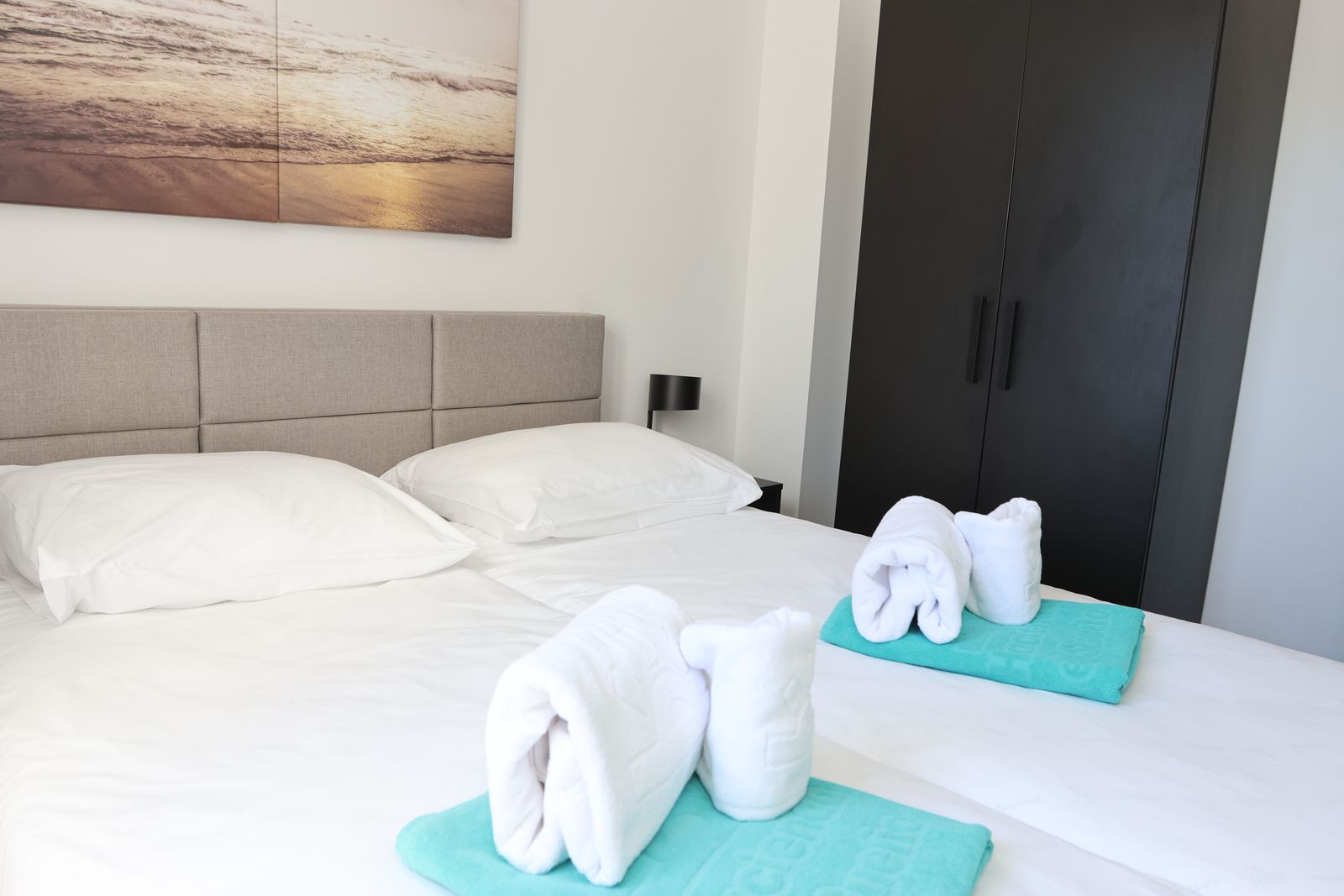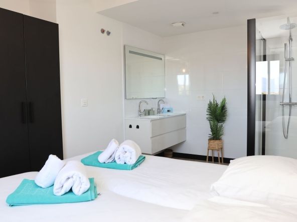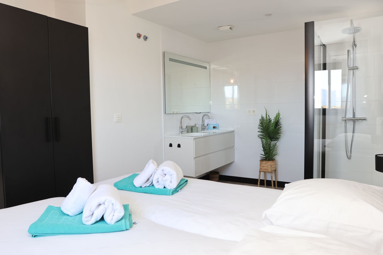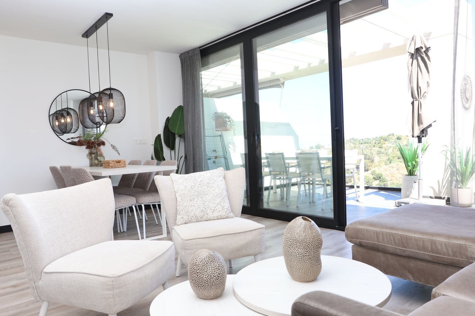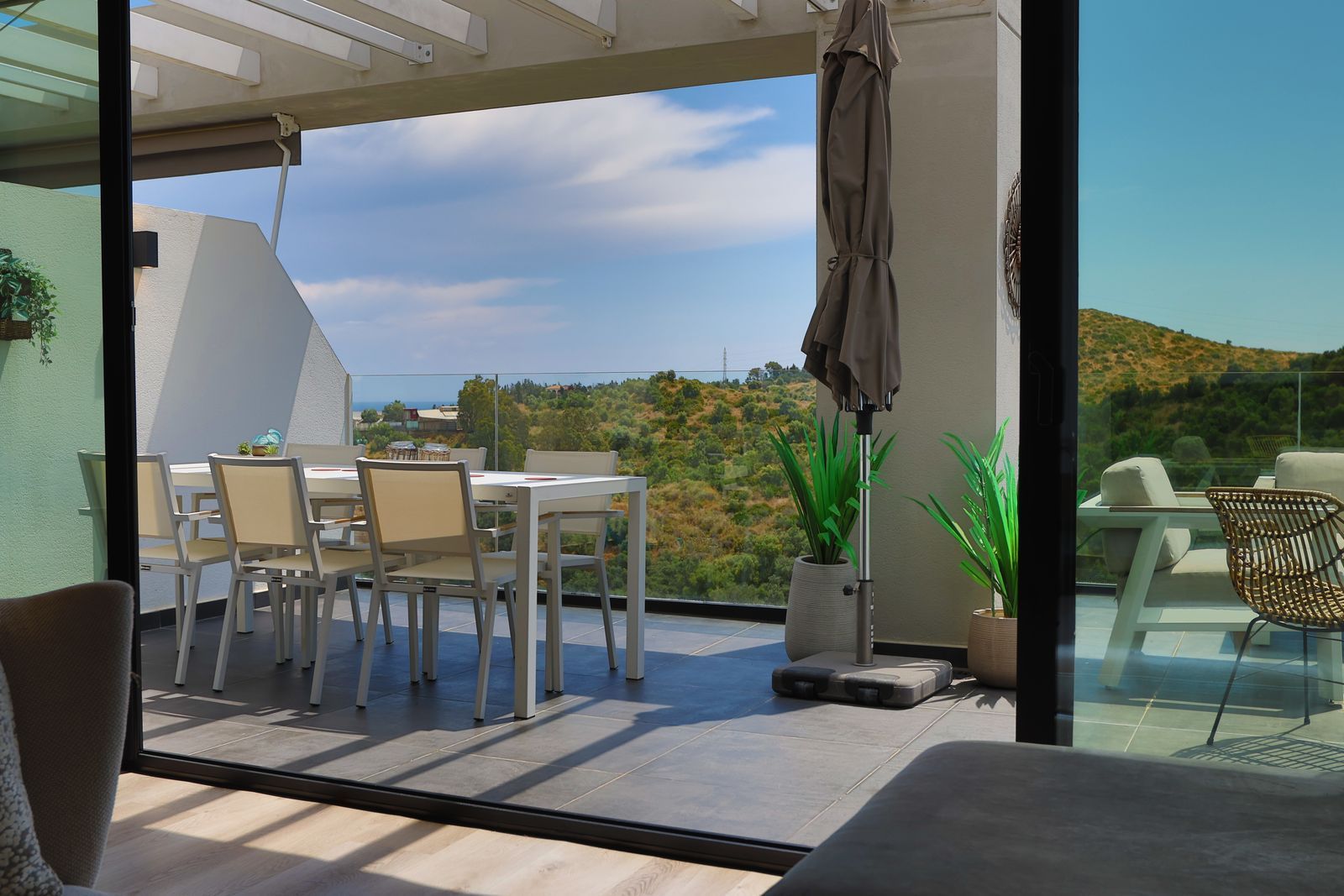 Being a corner penthouse there are only neighbours on one side and the open views to the sea and mountains are panoramic.