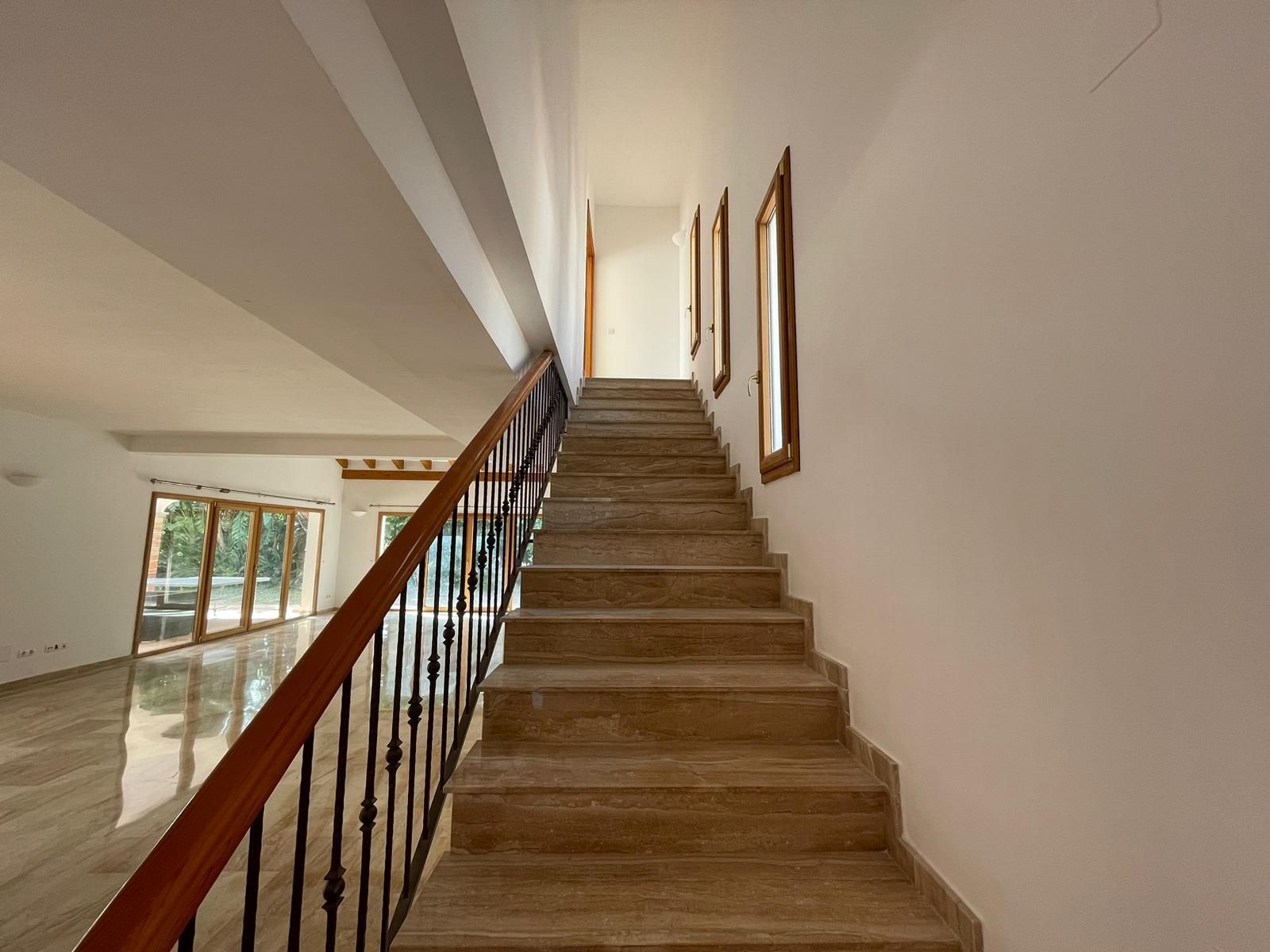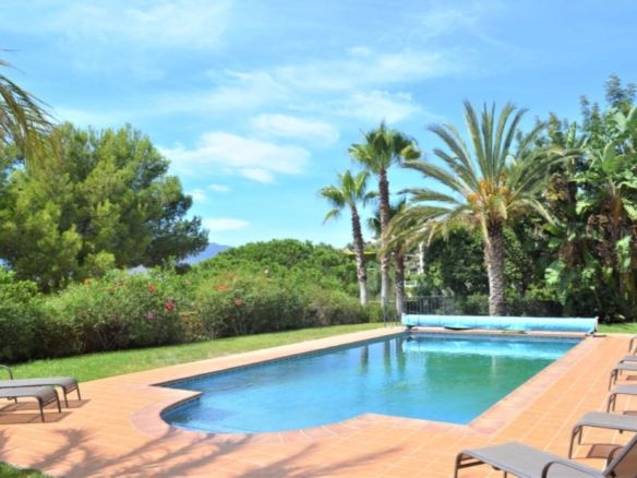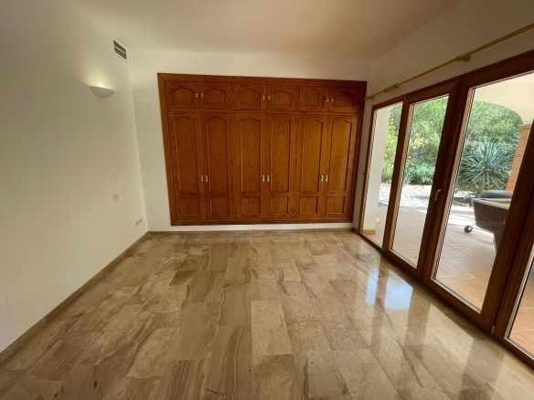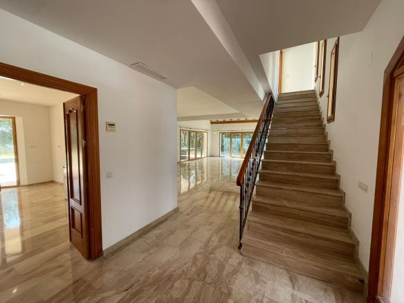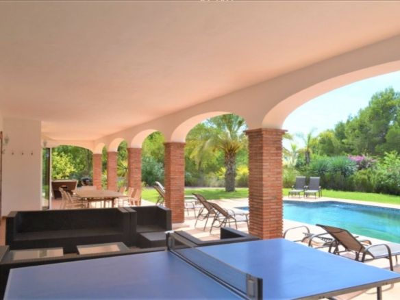 The villa is built across 463m2 with a plot of 2197m2. As you enter the front door, on the east wing there are 3 double bedrooms and 2 bathrooms, a separate kitchen and very sunny large lounge. The west wing has another double bedroom, bathroom and additional area for a second lounge or office. On the first floor there is a large master bedroom, dressing area and large en suite leading out to a very secluded separate terrace. The gardens are well maintained with many fruit trees, excellent sized pool and parking up to 10 cars, with the addition of a double garage. The property is all on the flat and has disable access. The kitchen needs renovating. And the property comes unfurnished. The owner is open to offers.