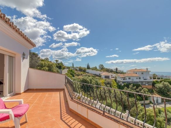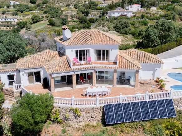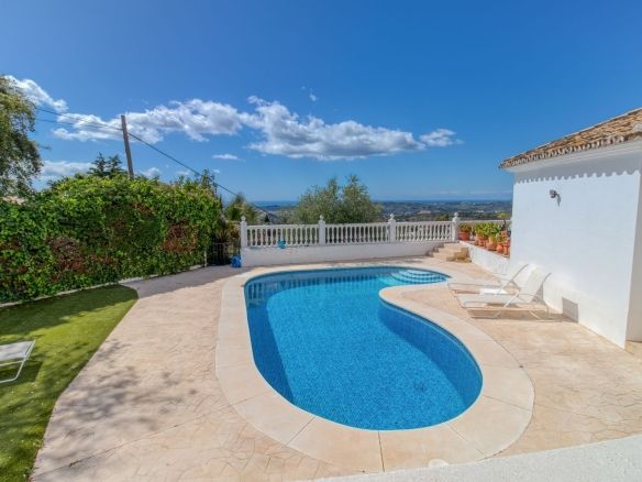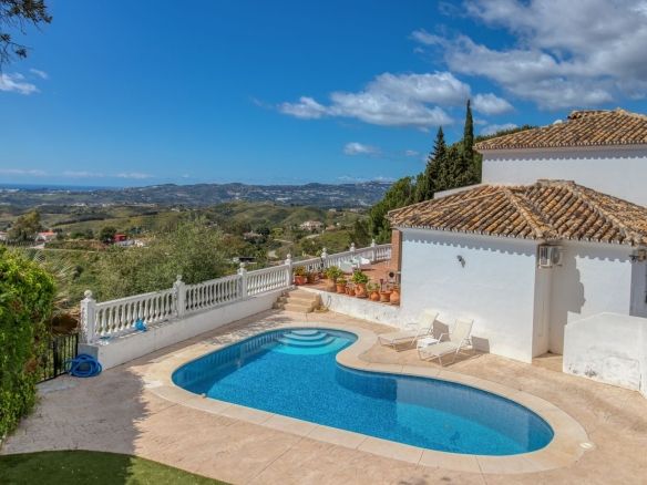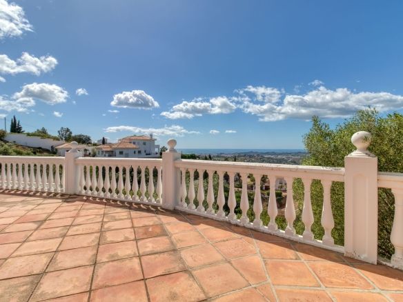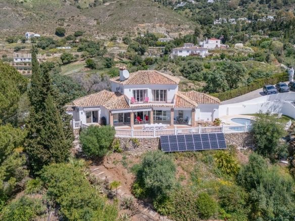 Welcome to your private hillside retreat just 3 minutes from the heart of Mijas Pueblo. This beautifully maintained 5-bedroom, 4-bathroom villa offers the perfect balance of nature, comfort, and convenience—with breathtaking panoramic views of the sea and mountains as your everyday backdrop.