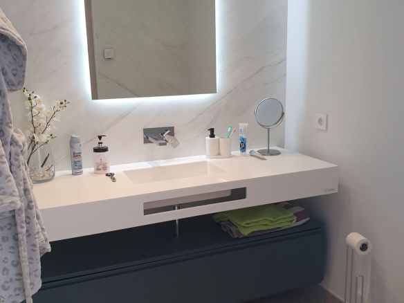 Breathtaking views of the Mediterranean Sea, visible from both the property and the communal areas.
