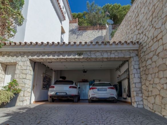 The outdoor area features a beautiful swimming pool, perfect for relaxing on warm summer days, and a large garage with space for two cars, ensuring you never have to worry about parking.