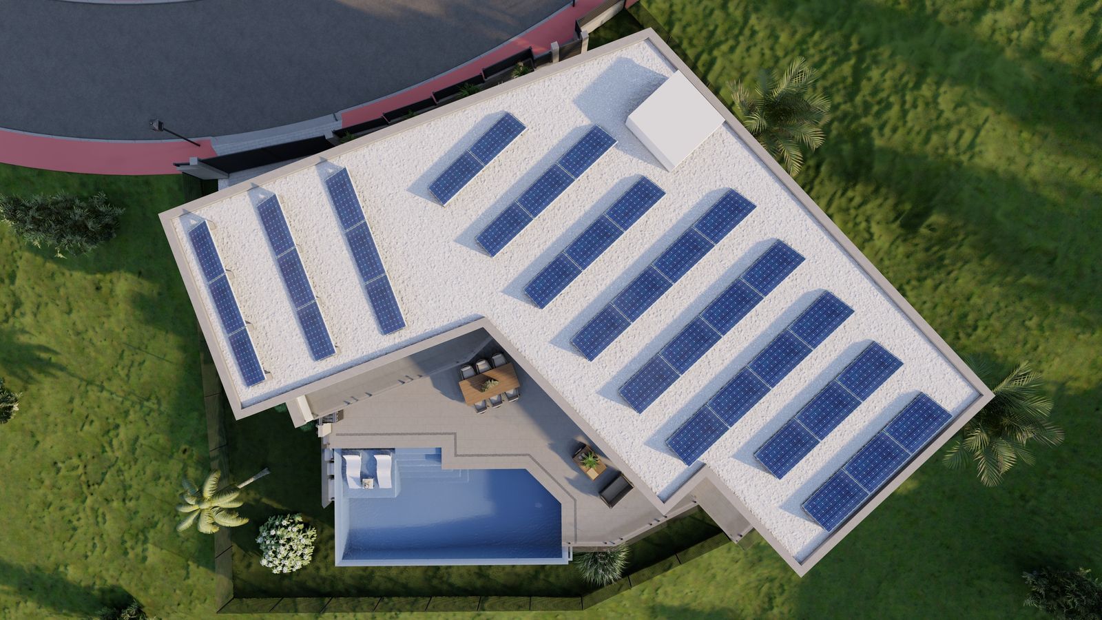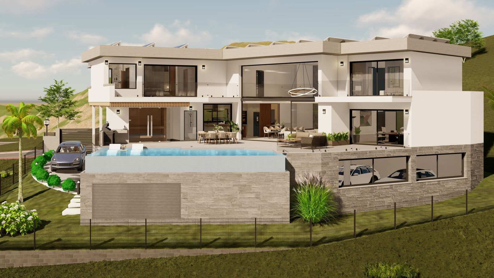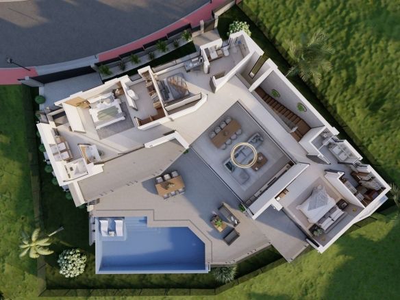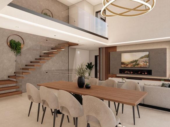 With the possibility of including a sauna or barbecue area with a kitchen, this villa offers a versatile space adaptable to your preferences. The spacious entrance allows parking for up to 5 cars, or even the option of converting part of the space into a private gym. Furthermore, there is the possibility of incorporating up to 5 or 6 bathrooms, catering to the individual needs of each owner.