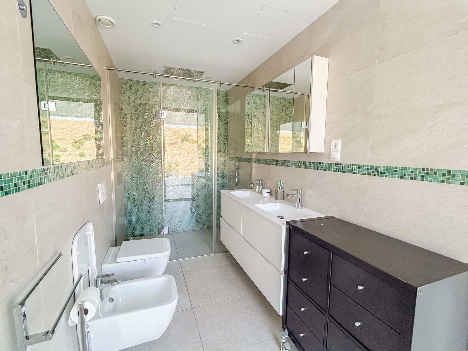 On the middle floor, at entrance level, the villa offers a covered garage for two vehicles, four comfortable bedrooms and three full bathrooms, two of which share a bathroom. In addition, there is a machine room that serves as a laundry room and a terrace with direct access from the secondary bedrooms, all designed to offer maximum comfort on a day-to-day basis.