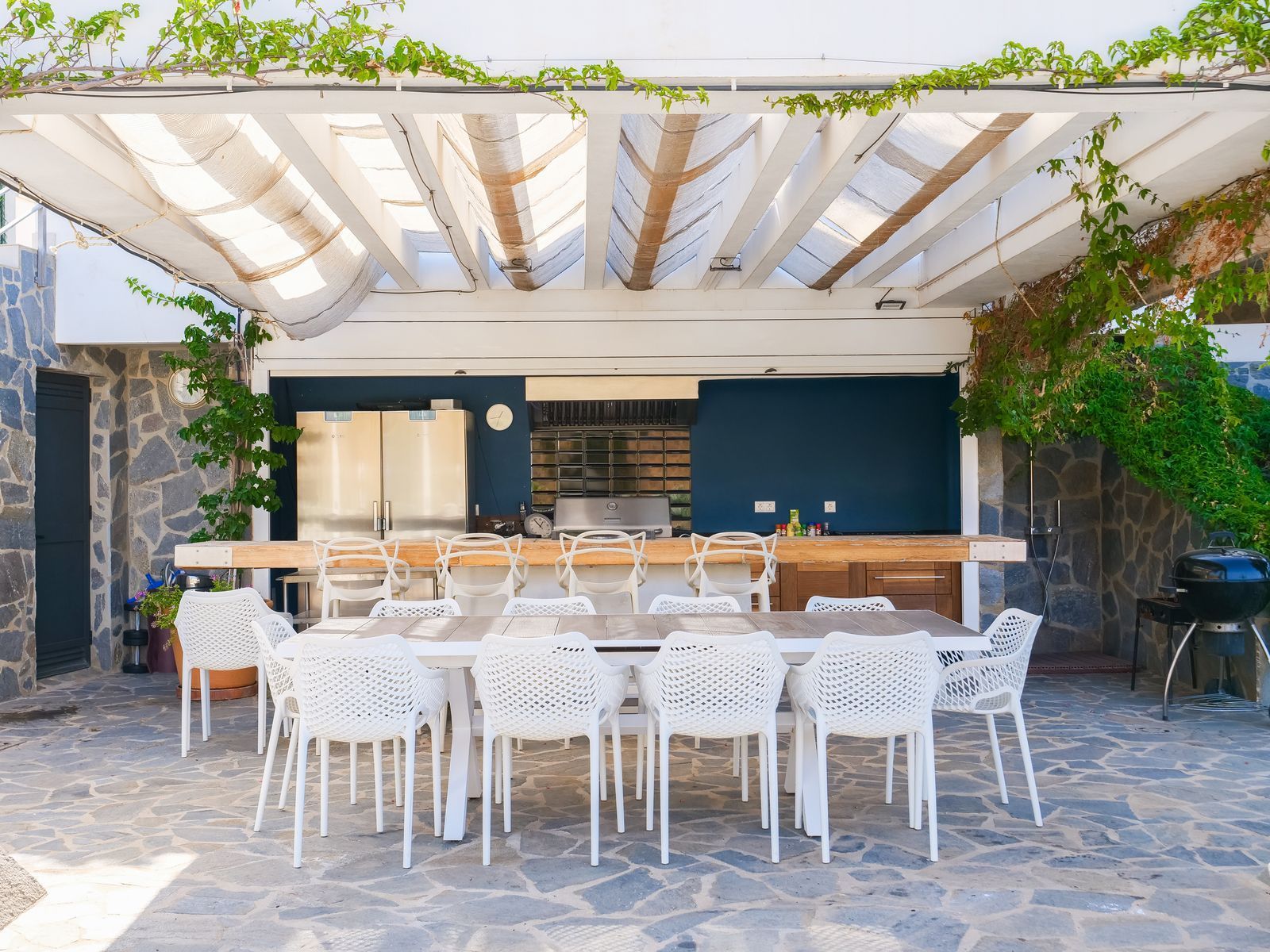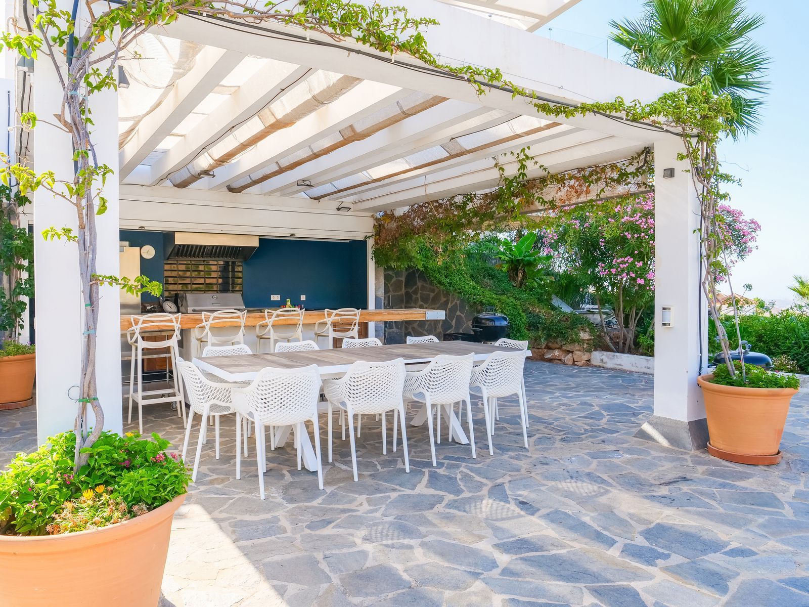 On the ground floor, conceived as a space for leisure and relaxation, we find a beautiful swimming pool surrounded by a large terrace partially covered with a pergola, perfect for rest or social gatherings. An elegant fully equipped outdoor kitchen with barbecue is integrated with a cosy chill out area and an exquisite Zen-type garden with a fish pond. Also on this level is a charming wine cellar, ideal for wine lovers.
