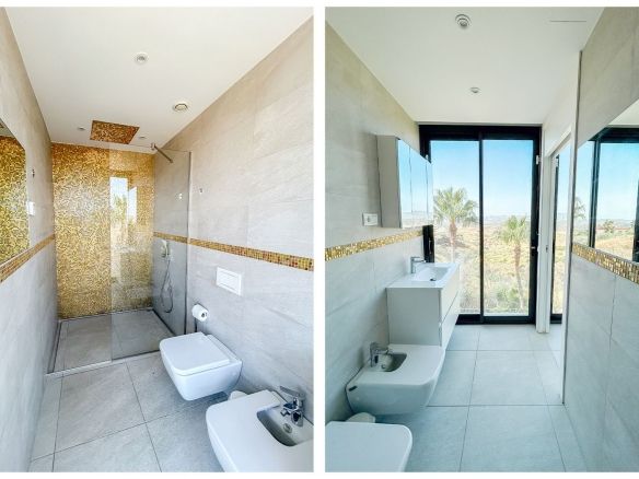 On the middle floor, at entrance level, the villa offers a covered garage for two vehicles, four comfortable bedrooms and three full bathrooms, two of which share a bathroom. In addition, there is a machine room that serves as a laundry room and a terrace with direct access from the secondary bedrooms, all designed to offer maximum comfort on a day-to-day basis.