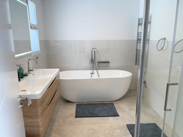 Originally built in 1996, this elegant home was completely renovated in 2021 to a high standard. Its layout is especially appealing, with all main living areas and bedrooms on one level – ideal for families with children or those with reduced mobility.