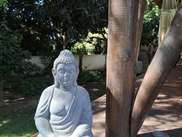 Downstairs, with its own entrance and direct access to the lush garden we find the very spacious 70m2 private studio apartment, featuring a full kitchen, bathroom with shower, washing machine, lounge area with pull-out couch, 2 single beds, and air conditioning.