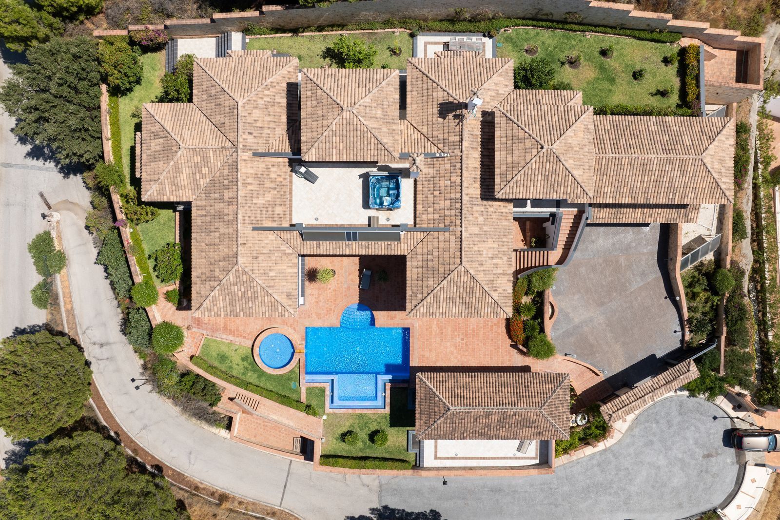 The property is surrounded by a wraparound garden with multiple terraces, a saltwater infinity pool plus a children’s pool, and a two-car garage. An eco-friendly septic tank recycles water for irrigation. This villa combines modern luxury, energy efficiency, and unbeatable panoramic views, all in a prime Costa del Sol location.