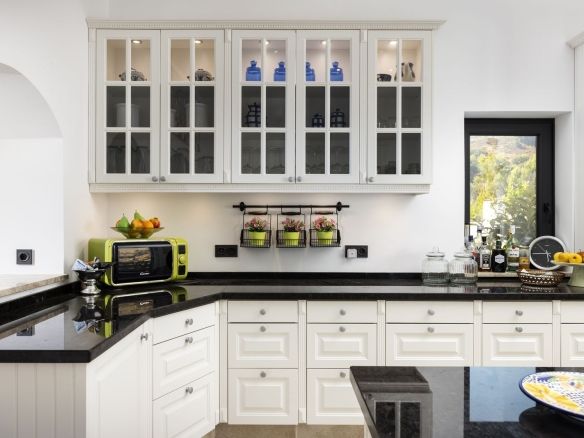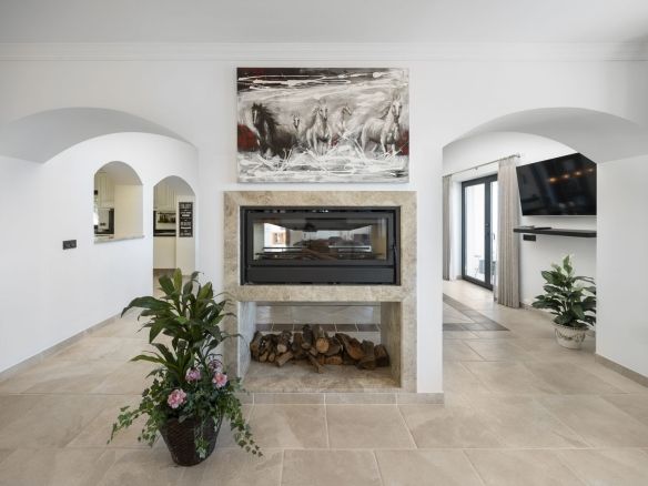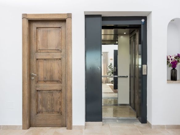 The villa features underfloor heating, hot and cold A/C, tempered glass windows throughout, and solar panels for both water and underfloor heating. There are two lifts: one from the entrance to the garage, and another to the rooftop terrace with jacuzzi. Outdoors, you’ll find an infinity pool, children’s pool, extensive terraces, and a large outdoor kitchen.
