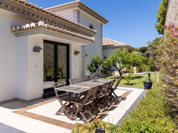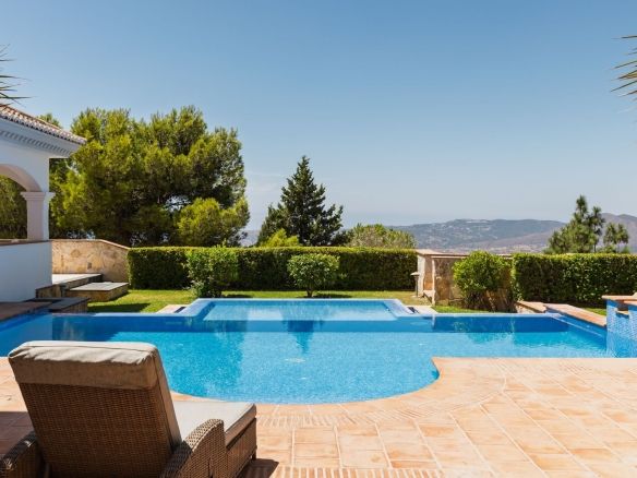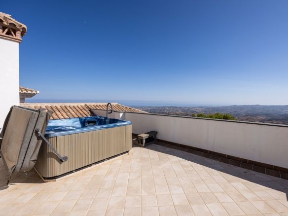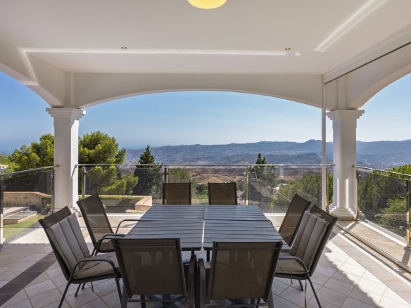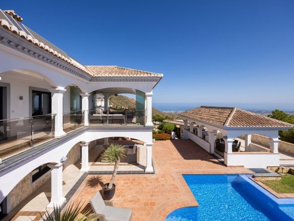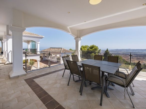 The property is surrounded by a wraparound garden with multiple terraces, a saltwater infinity pool plus a children’s pool, and a two-car garage. An eco-friendly septic tank recycles water for irrigation. This villa combines modern luxury, energy efficiency, and unbeatable panoramic views, all in a prime Costa del Sol location.