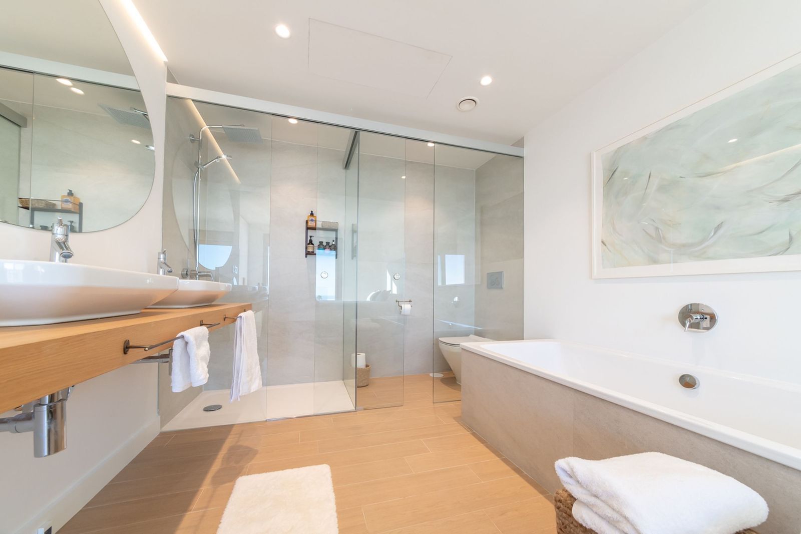The main floor features a spacious living room and an open-plan kitchen, perfect for sharing unforgettable moments with friends and family. The wood-burning fireplace adds a cozy touch to your evenings. The large terrace is the perfect place to enjoy al fresco dining while taking in the breathtaking views. A guest toilet is also located on this floor.