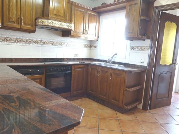 The property has an entrance hall leading to the spacious lounge/diner with its beamed ceiling and fireplace with cast iron stove. This room also benefits from dual air conditioning,. Patio doors lead out to the south facing terrace with its panoramic coastal and sea views. The terrace has both open and covered areas so you can enjoy sun or shade.