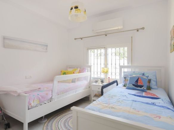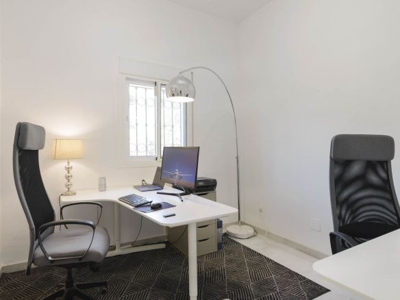 In addition to the 4 bedrooms and 4 bathrooms, the villa includes a versatile office room, perfect for working from home or for use as an additional living space. The villa is designed for both comfort and security, with an advanced external perimeter and internal alarm system. Every window and door is fitted with integrated full-length blinds (persianas). The property benefits from modern upgrades such as roof-mounted solar panels for hot water, replaced air conditioning units, and a new immersion heater system. The large garage, currently serving as a leisure and storage area, could easily be converted into an additional en-suite bedroom.