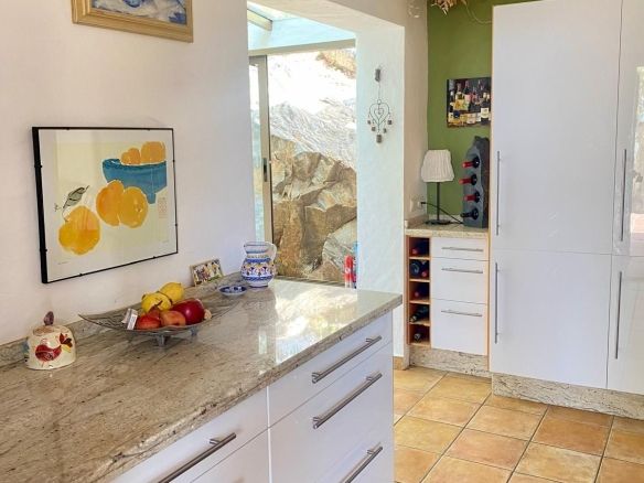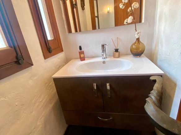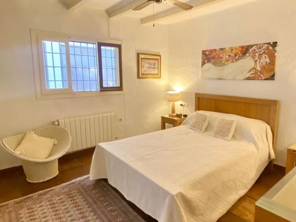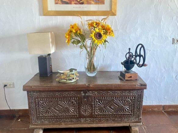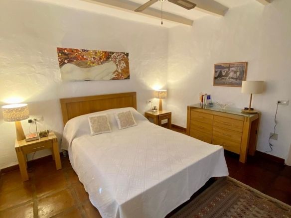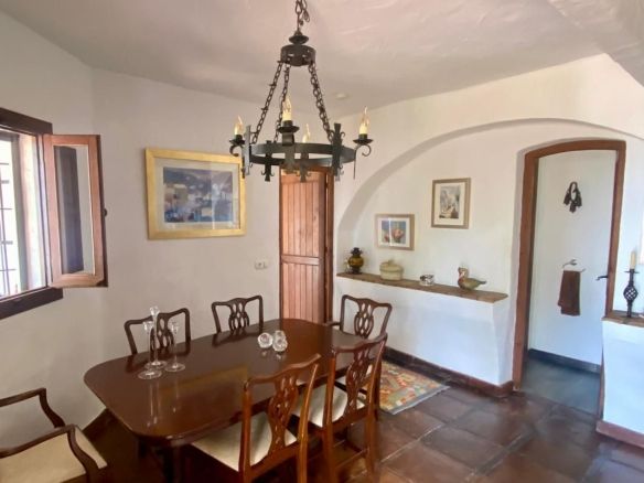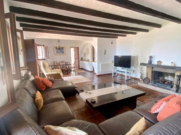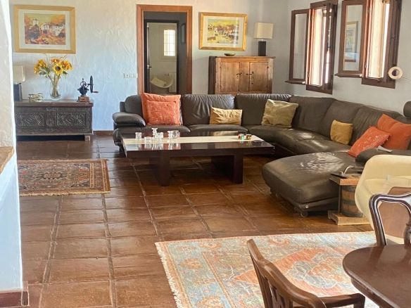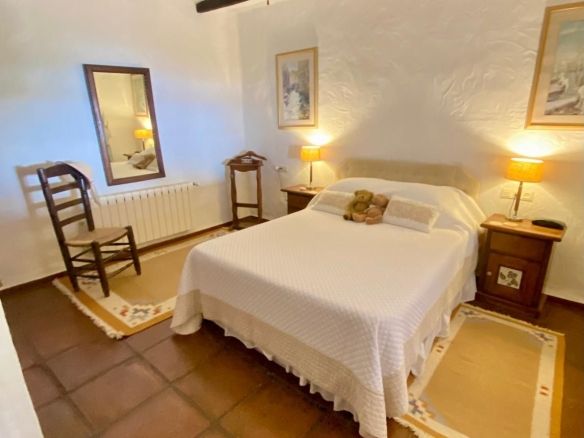 This traditional feel finca is on one level and has a cosy rustic but modern feel with vaulted and beamed ceilings in many of the rooms, which keep the house cool in the summer months. The large living/dining area is light and fresh in the summer and during those occasional cooler evenings during the winter months you can enjoy the open fire as well. It's a well balanced mix of a cosy rustic feel yet light with modern touches in the bathrooms and a bright kitchen which connects to the living area. The finca faces east south and west with great views to enjoy from every window.