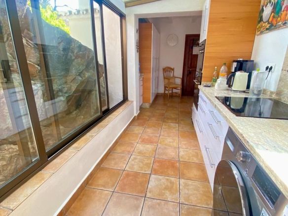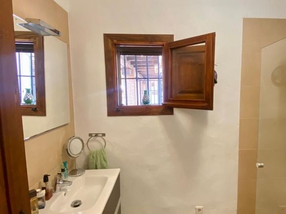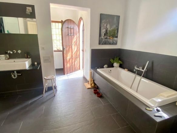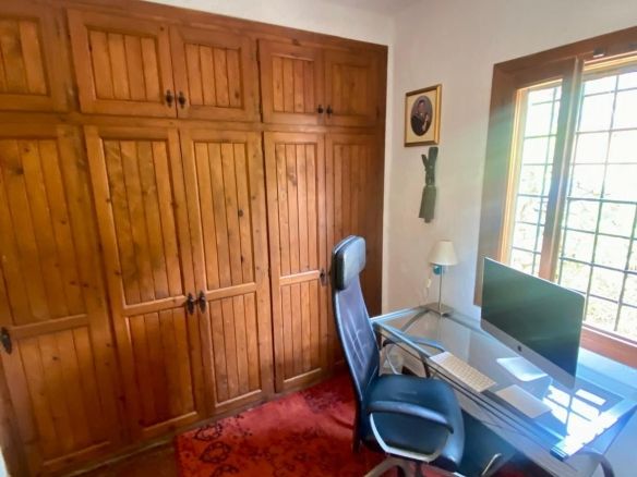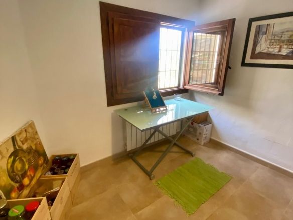 There are another 2 bedrooms in the guest house which also has another bathroom. The finca also has central heating in most of the rooms, when needed. There are also solar panels on the roof of the indoor pool area. The indoor pool can be enjoyed during the warmer months with windows that open from all sides to enjoy the fabulous views and there is also a shower and a jacuzzi enjoy. There is plenty of space to also use this area as a gym.