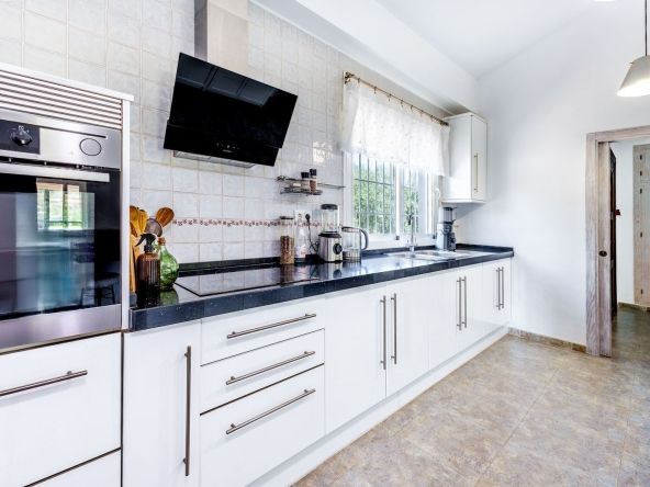 This three-bedroom villa is distributed over a single floor and provides straightforward access to the living areas, kitchen, bedrooms and external terraces. At the rear of the property, overlooking and enjoying a near infinity view, is the large, salt water swimming pool and sunbathing terraces. Within the landscaped grounds are a comprehensive and varied number of outbuildings, suitable for several uses, chicken coop, aviary, wood store, car port etc, lawned and terraced areas, vegetable gardens, a mixed variety orchard and a yield generating mango plantation with 300 fruit trees.