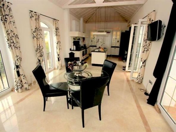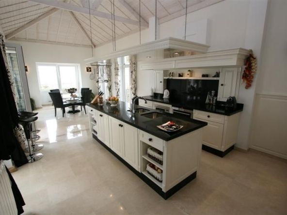 Spanning three levels, the villa’s thoughtful layout enhances its connection to the landscape. The main living floor features a bright lounge, stylish dining area, and a fully equipped kitchen — all opening onto a generous covered terrace with professional outdoor kitchen and barbecue, perfect for al fresco dining with a view. Overlooking the lush garden and shimmering private pool, this space invites effortless indoor-outdoor living.