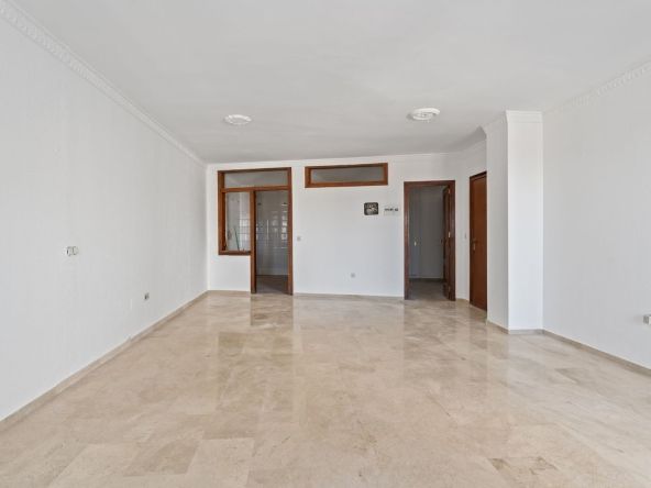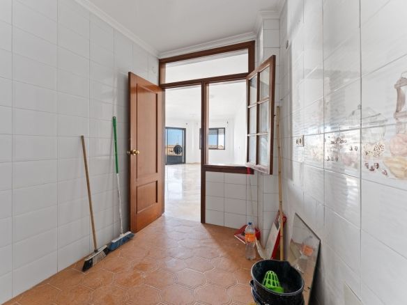 The layout already includes a large living area that opens to a sunny terrace with partial sea views, a spacious kitchen, and a bright bedroom with fitted wardrobes. With its size and distribution, it’s easy to envision a modern open kitchen-living space, two comfortable bedrooms, and two stylish bathrooms.