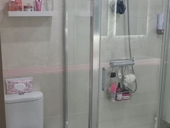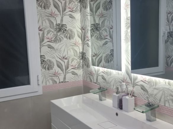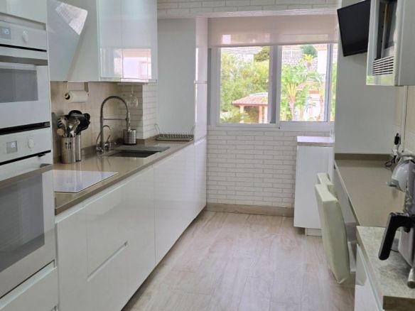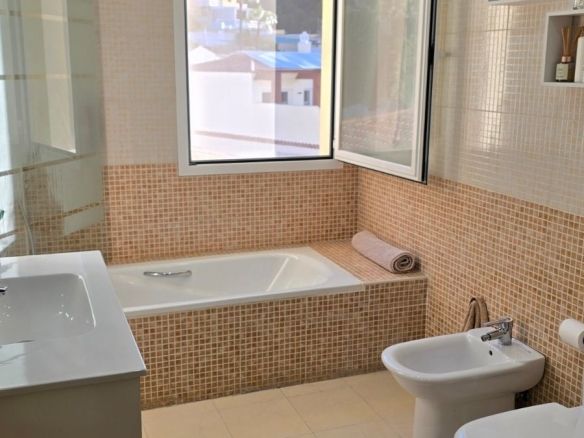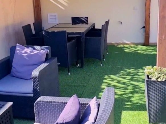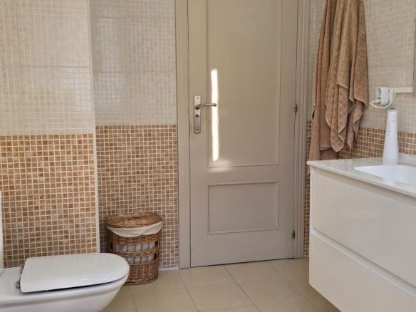 Designed to maximise light, comfort and style, the interior offers a spacious and luminous living-dining area with a bioethanol fireplace and pre-installation for a traditional fireplace, creating a refined yet cosy ambiance throughout the year. The property comprises three double bedrooms with fitted wardrobes and three bathrooms, one of which has been adapted for laundry and storage purposes. The bathrooms feature elegant finishes, including a designer walk-in shower and a bathtub, combining functionality with modern design.