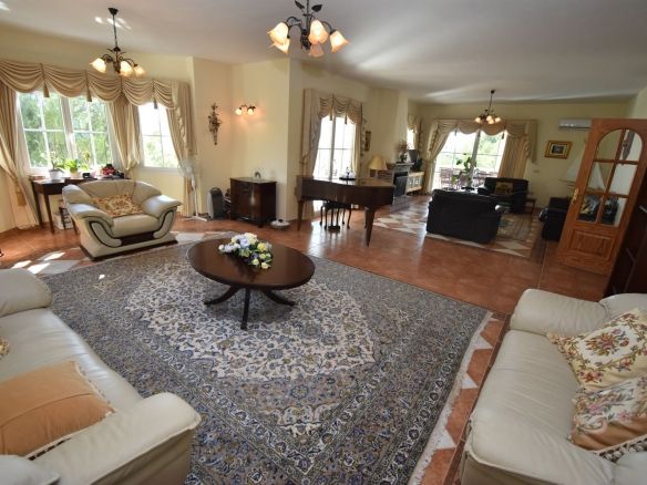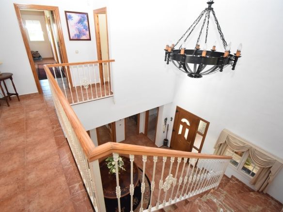 On entrance, reception hall which benefits from a sweeping staircase to the upper floor. From the reception, ahead leads to the impressively large open living room with feature fireplace and doors out to the sunny terraces & shimmering private pool below, the perfect setting with the views of the coastline in splendour. The lounge is adjacent to an impressive dining area and the kitchen. Fitted with all first class quality white goods and work tops, separate pantry/laundry room with access to the front terraces which surround the Villa – perfect for enjoying breakfast in the sunshine and so handy close to the pool too!