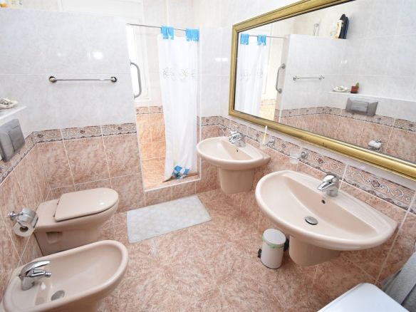 The independent guest apartment has it's own independent entrance however can easily be incorporated back into the main Villa if need be (as only need to knock a wall through – on level with the main house). Ideal whatever the case! Fantastic double bedroom suite enjoying an en-suite bathroom, lovely large living and dining room with access out to a wonderful sunny terrace looking to the coastal views. Separate kitchenette is plumbed in but not fitted. A teenagers paradise, granny flat or rental! The plot is superb with the flowers in bloom and shimmering pool – Viewing is highly recommended!
