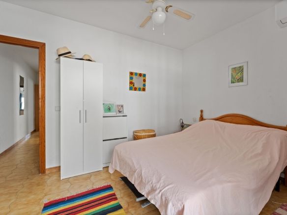 Walk through the wrought-iron gate from the residents’ pool terrace and you step straight into a semi-covered outdoor sitting room – the spot for lazy breakfasts or a cool drink after a swim. A convenient guest cloakroom is tucked to one side, while a private doorway leads directly into the first double bedroom, perfect for friends who like an early dip.