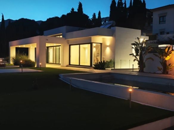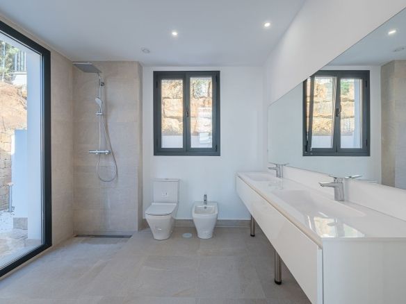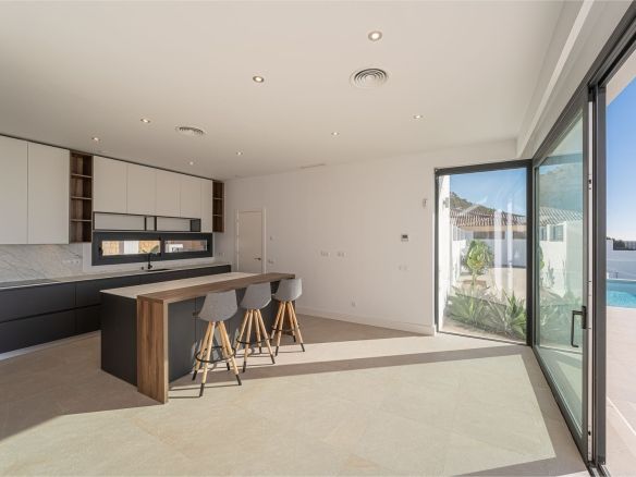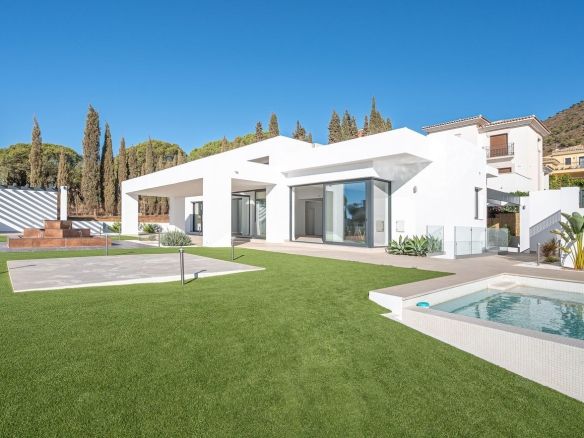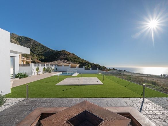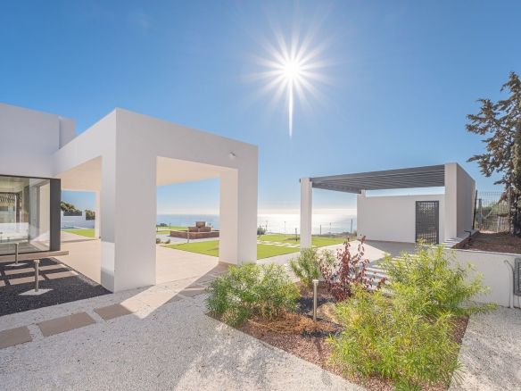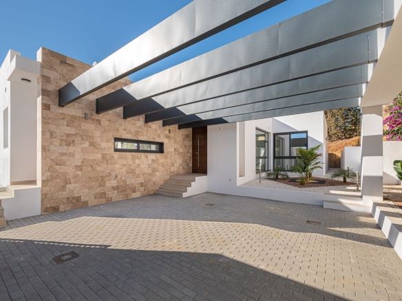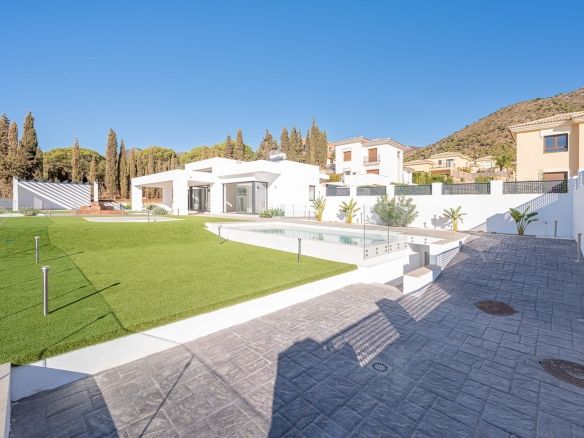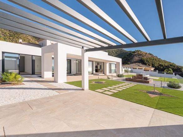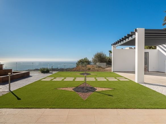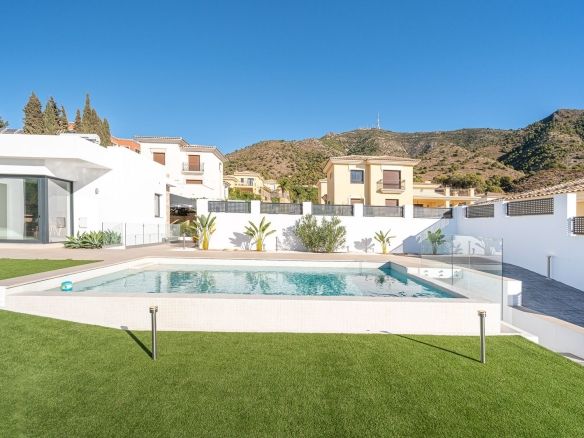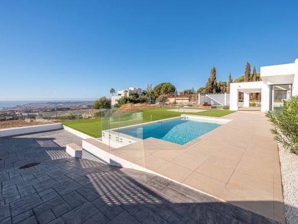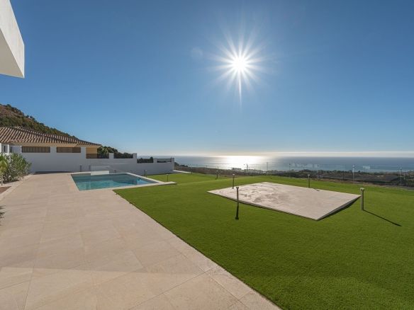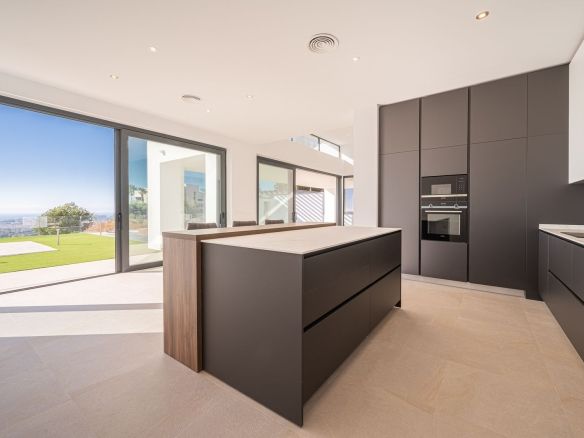 Modern villa with panoramic views ! This fantastic modern villa situated in the exclusive urbanisation of Buenavista, Mijas, boasts incredible sea and mountain views and is located within walking distance to the commercial area of El Higueron and the coast, with easy access to the motorway. The house is built on a plot of 890 m² and consists of 2 levels, ground floor and basement. On the ground floor and main floor of the house, there are four bedrooms and four bathrooms. This floor has a newly built Villa with amazing panoramic sea and mountain views. Situated in a gated urbanisation of Buenavista, with only a few villas and with security. This modern south facing house consists of 2 levels – first floor and basement. On the main floor- you will find the entrance hall with a spacious living room with large sliding doors and large windows enjoying all day sun and amazing views. The open plan kitchen is fully equipped with brand new appliances, a large pantry and a separate laundry area. There are four bedrooms, three full bathrooms and a guest toilet. The finished basement with a space of 133m², can be used as a gym, cinema room, office, study or play area, which also has an access to the pool area. The house is finished with high quality materials and is equipped with independent hot and cold air conditioning thermostat in each room, electric shutters, double glazed windows and doors, alarm system and solar panels. Very functional distribution as all bedrooms are on the main floor, perfect for families and adapted for reduced mobility. This property boasts 890m² of plot enjoying a large swimming pool, barbecue area, garden area, and a garage for several cars with electric door. Situated in a natural enclave between the mountains and the sea, in a privileged area with easy access to the motorway, next to the restaurant El Higueron and the commercial area of El Higueron. A few minutes drive from Benalmadena, Fuengirola and Malaga.