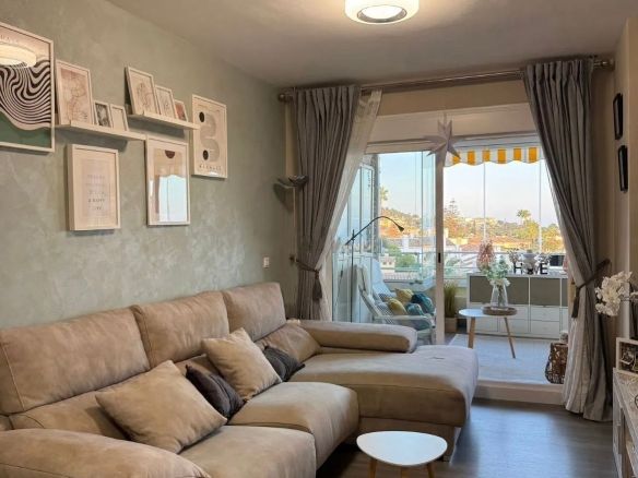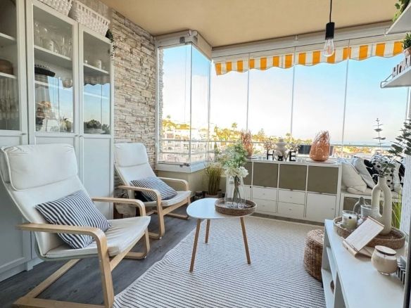 Experience Mediterranean living at its best in this beautiful fully renovated 2-bedroom, 1-bathroom apartment, ideally situated between Fuengirola and Marbella. Flooded with natural light, the home features a spacious glazed terrace with panoramic, unobstructed sea views, creating a serene atmosphere throughout the property.