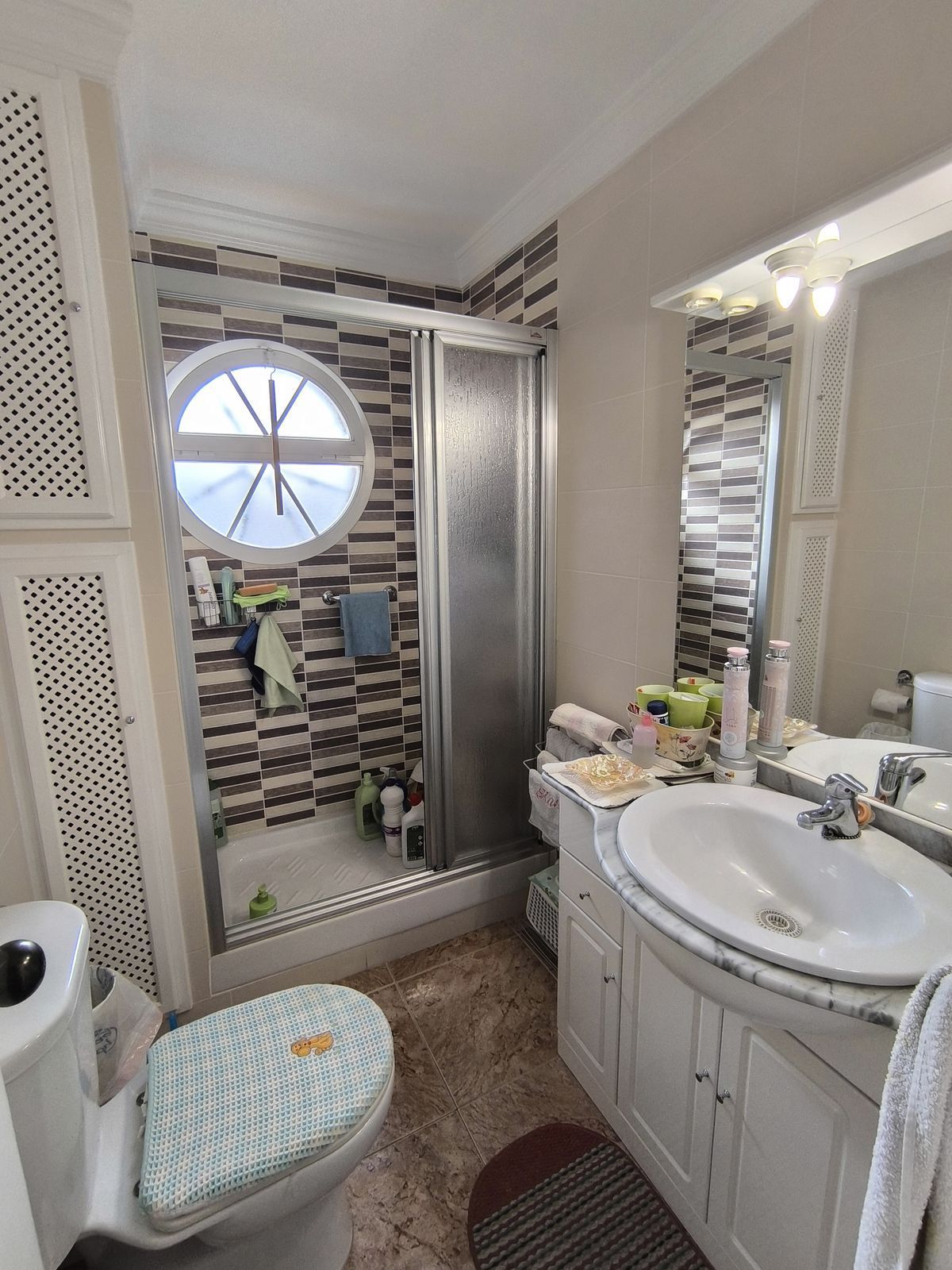Discover your new home in Las Lagunas de Mijas! This charming townhouse in the Doña Ermita area offers you everything you need for a comfortable and elegant life. With 170 square meters built, this house has been completely renovated, highlighting its stone facade and high-quality tiles. It has three large bedrooms with built-in wardrobes, two full bathrooms and an additional toilet, ideal for families or for receiving visitors.