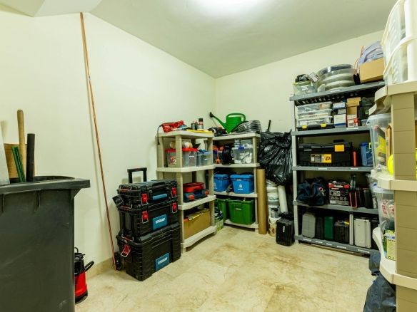 Completely renovated, this level is designed for entertainment and relaxation. It features a fully fitted kitchen, large TV screens, and generous space for gatherings with family and friends. A gym, a spacious master bedroom with ensuite, and two storage rooms are also found on this floor. The private garage comfortably accommodates three vehicles.