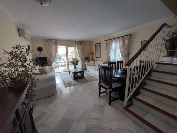 One of the few 3 bedroom duplex penthouses in the exclusive urbanisation of Puebla Aida in Mijas Golf , with its own Andalusian style, Impeccably maintained. With 4 communal swimming pools, and charming corners and squares throughout the urbanisation.