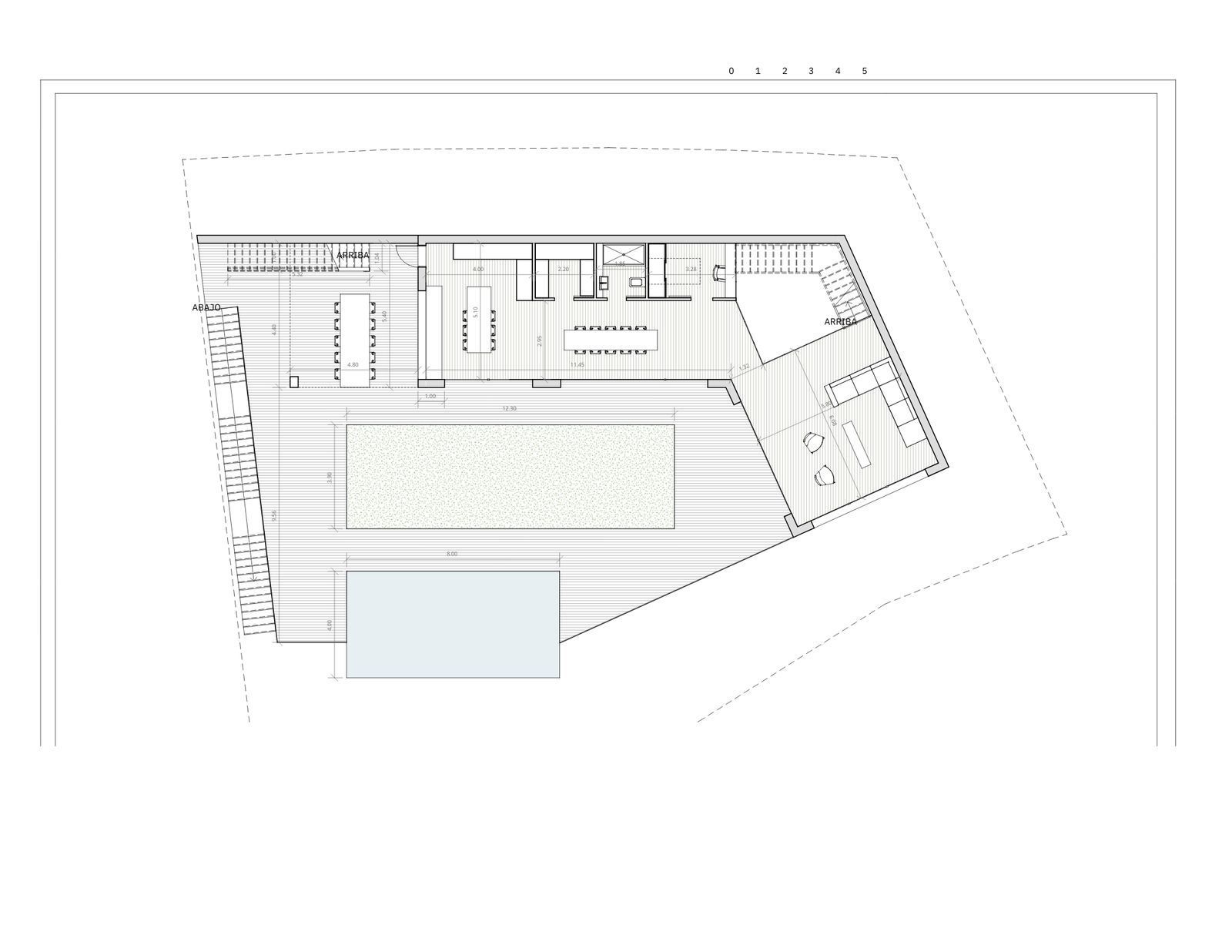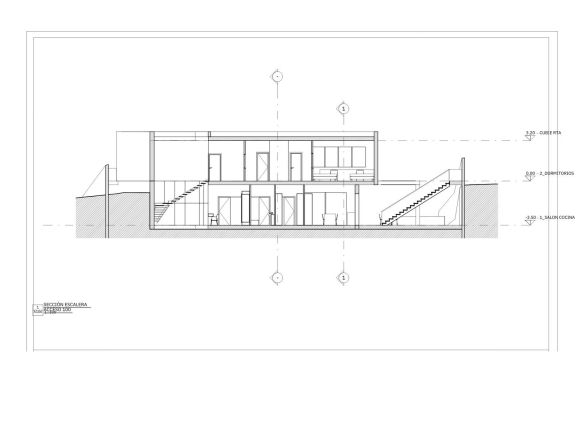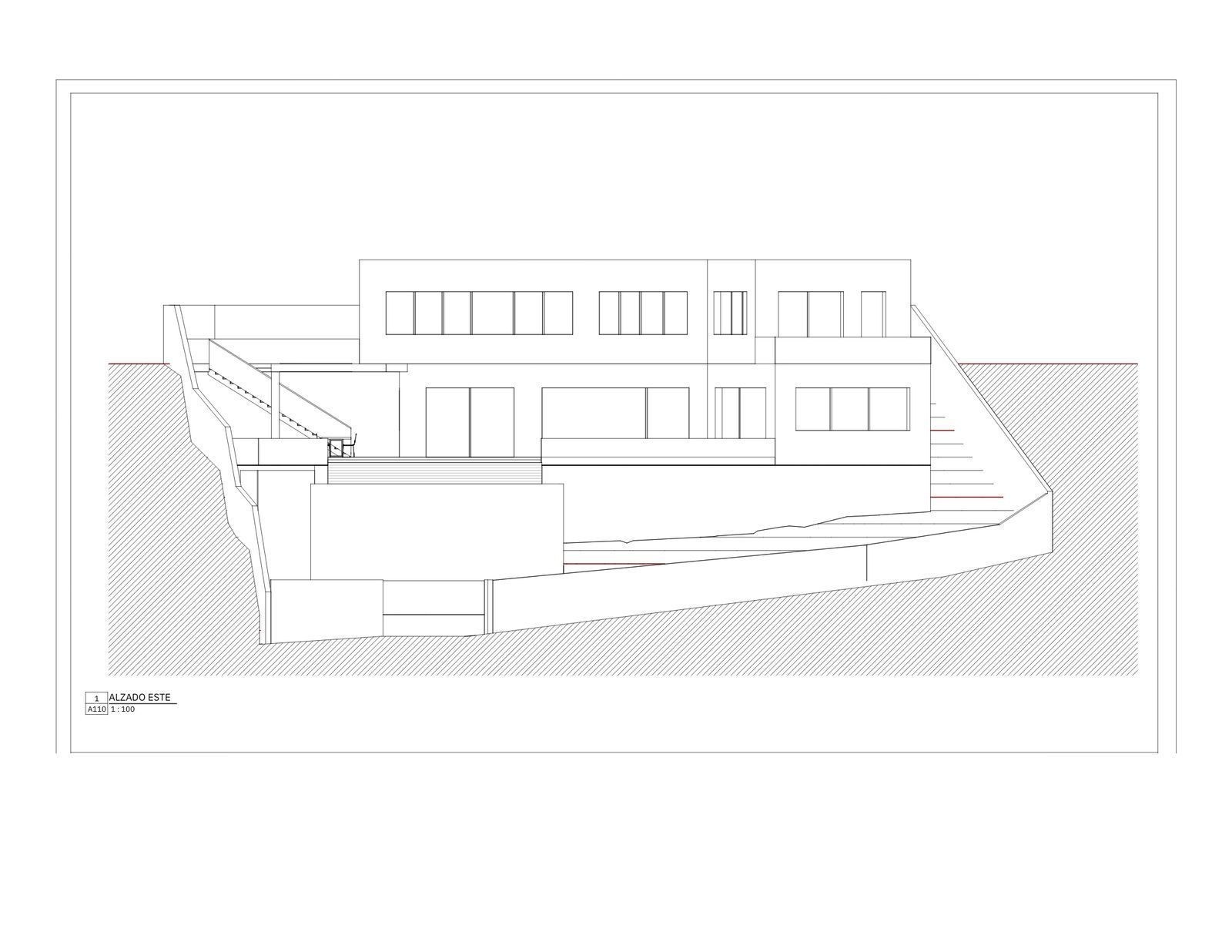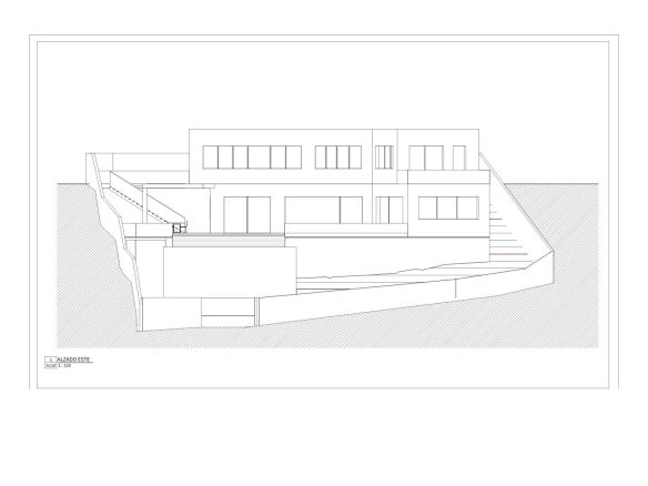 The projected dwelling is modern and functional, with two levels arranged around a side patio that provides illumination and ventilation.