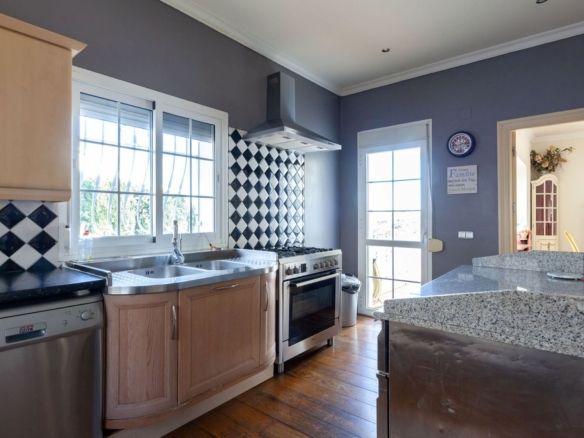The ground floor comprises of a large living and dining room leading onto a huge covered terrace enjoying sun from sunrise until late evening, with splendid sea and valley views,  a spacious very well equipped separate kitchen with large countertops and and large central  island.