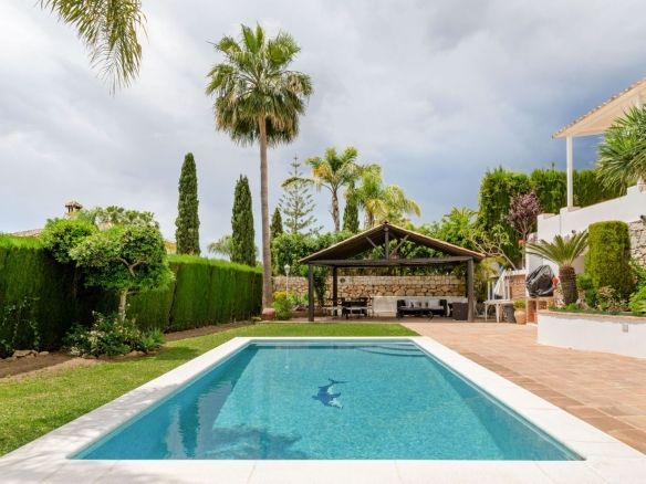 Outdoors, a large, beautifully landscaped garden offers shaded areas, a chill-out zone, an outdoor kitchen, a built-in barbecue, and an elegant private pool, the perfect setting for family gatherings, summer afternoons or simply relaxing under the Mediterranean sun.