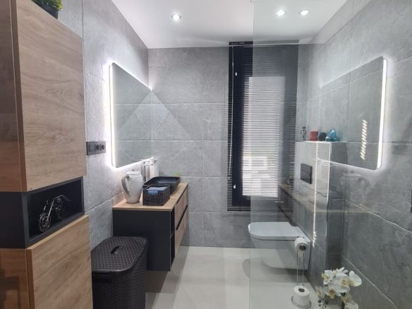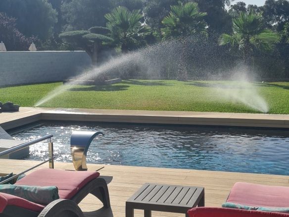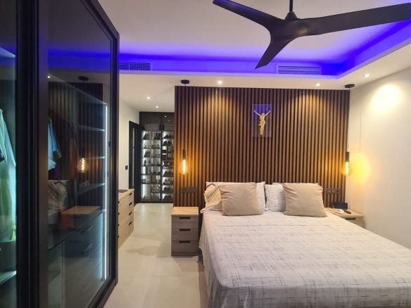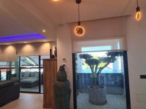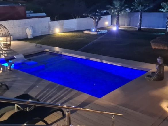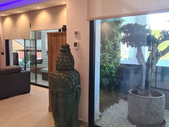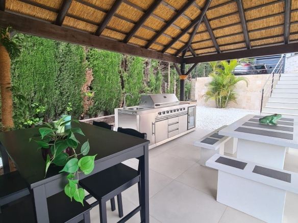 The villa is equipped with individually controlled ducted air conditioning, alarm system, solar panels.