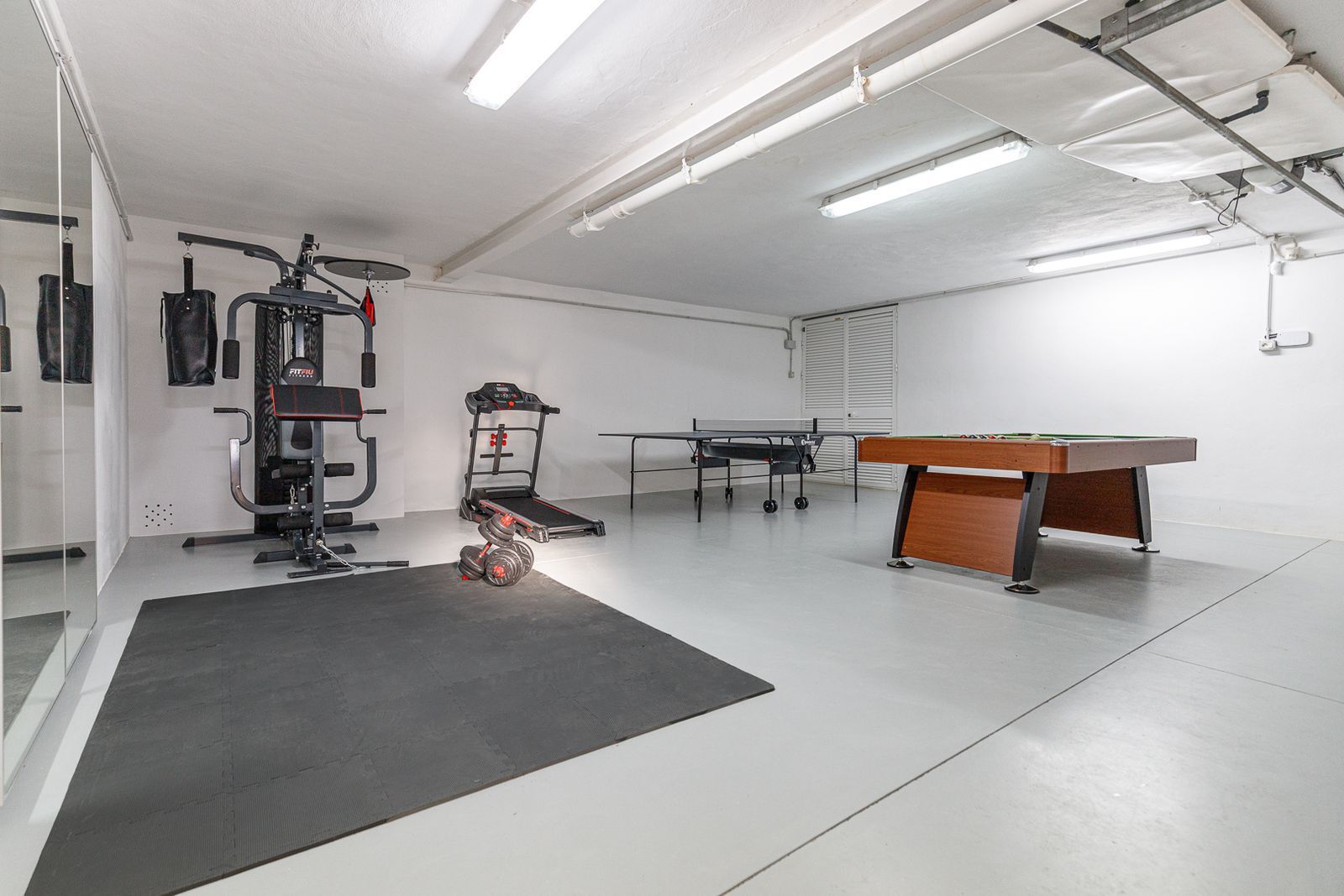 The ground floor consists of an entrance hall, living-dining room, kitchen-diner, 3 bedrooms with en-suite bathrooms, 1 guest toilet, laundry room, and storage room. The first floor consists of a hall, an office or bedroom, and a master bedroom with two separate dressing rooms, a bathroom with a Jacuzzi, shower, and sauna.