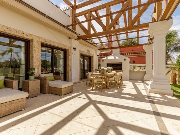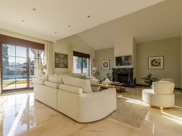 Frontline golf villa with high-quality finishes, less than 5 minutes from the AP7 and Fuengirola.
