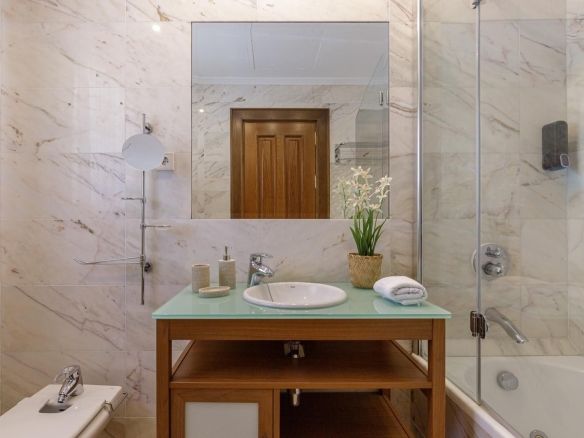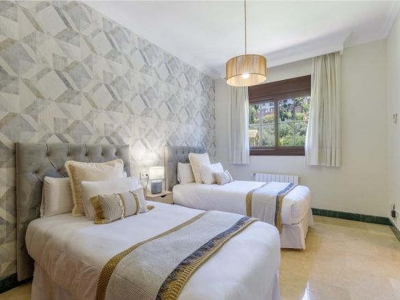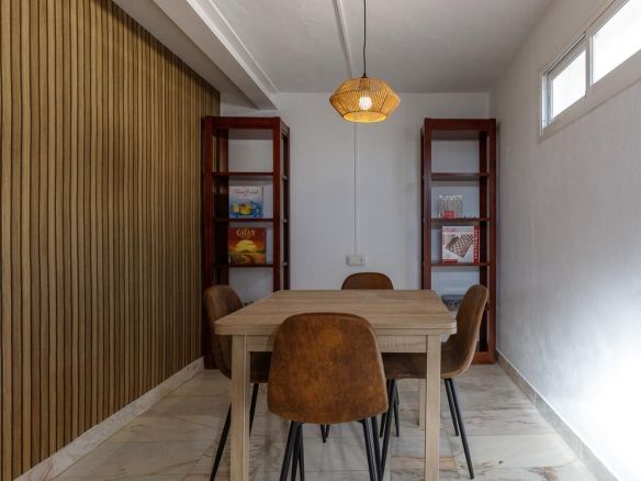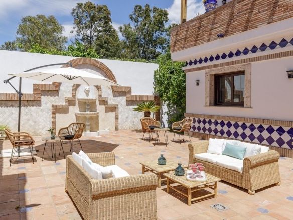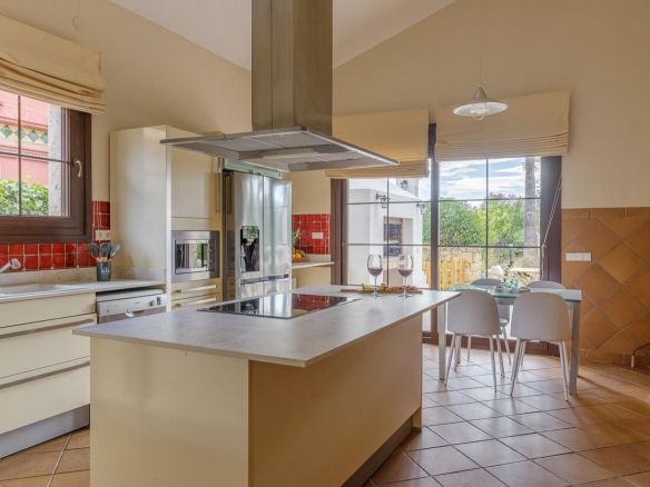 This large property has 5 bedrooms, 5 bathrooms, large living room – dining room, kitchen, games room and gym, private pool, garage for 2 cars and private garden.