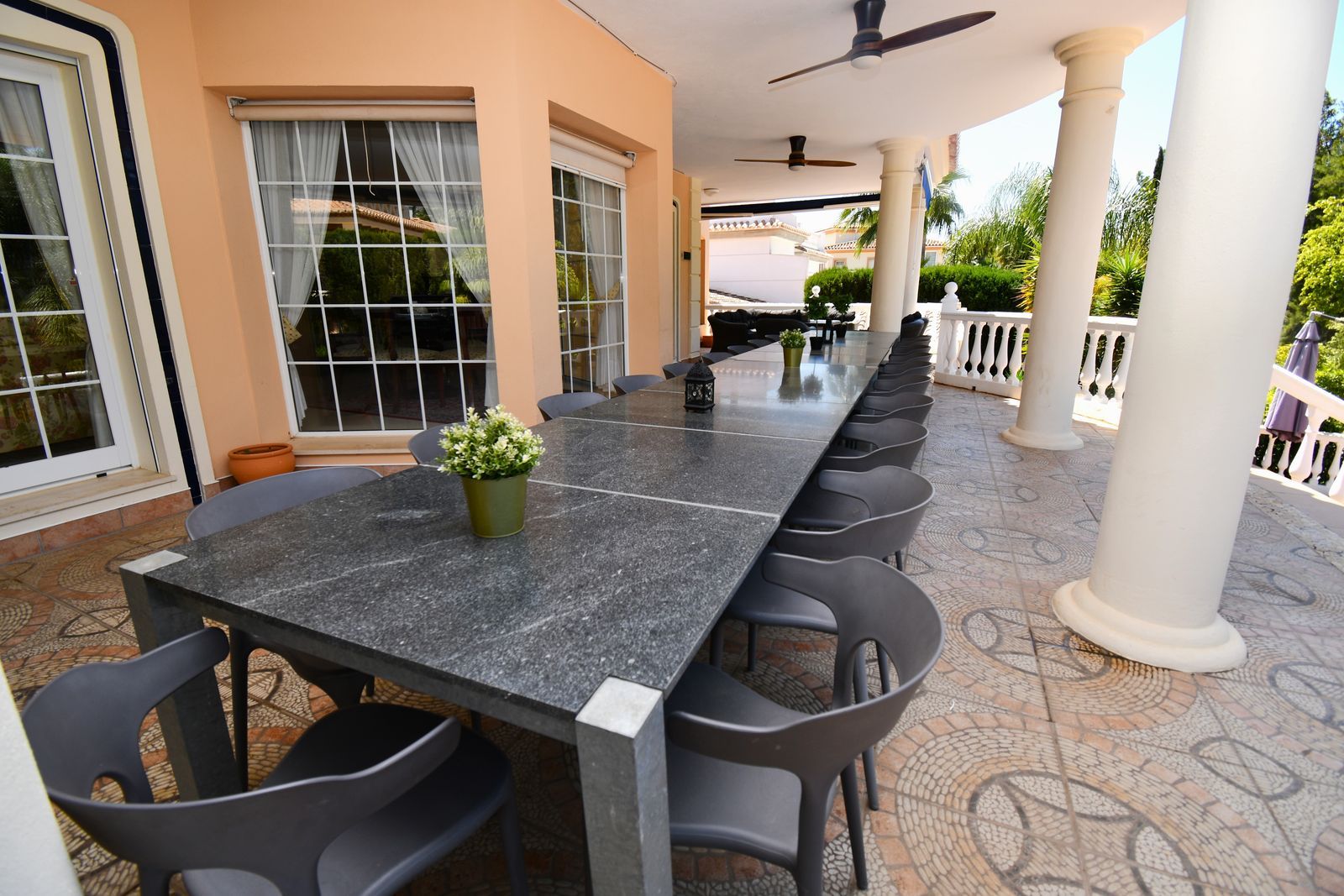 This impressive, front-line golf, 9 bedroom, 10 bathroom villa offers over 700m2 of living and entertainment space and sits on a spacious plot of 1,300m2.  This villa has 8 ensuite bedrooms, offering family/guests their own space and privacy.  All indoor and outdoor furniture is included, as well as the snooker table, poker table, and 12 mountain bikes.  This villa offers a great investment opportunity. The property is currently run as a holiday rental business.  The business can be included in the sale price, if required.  The property has its LPO.