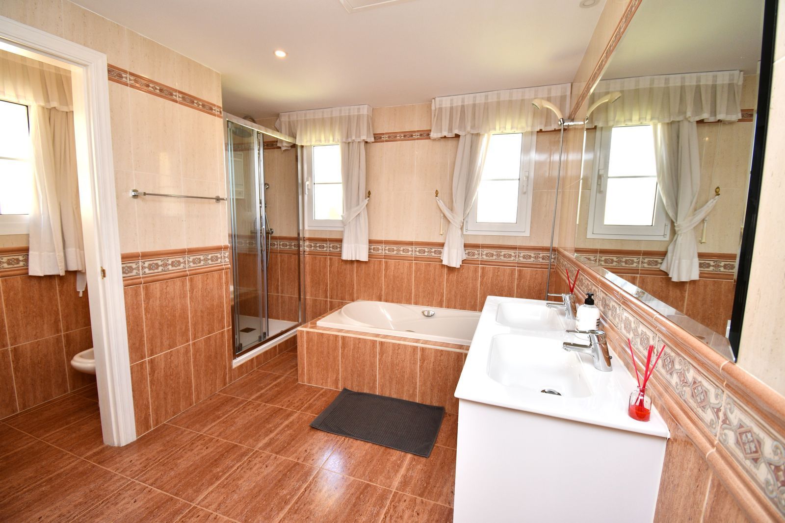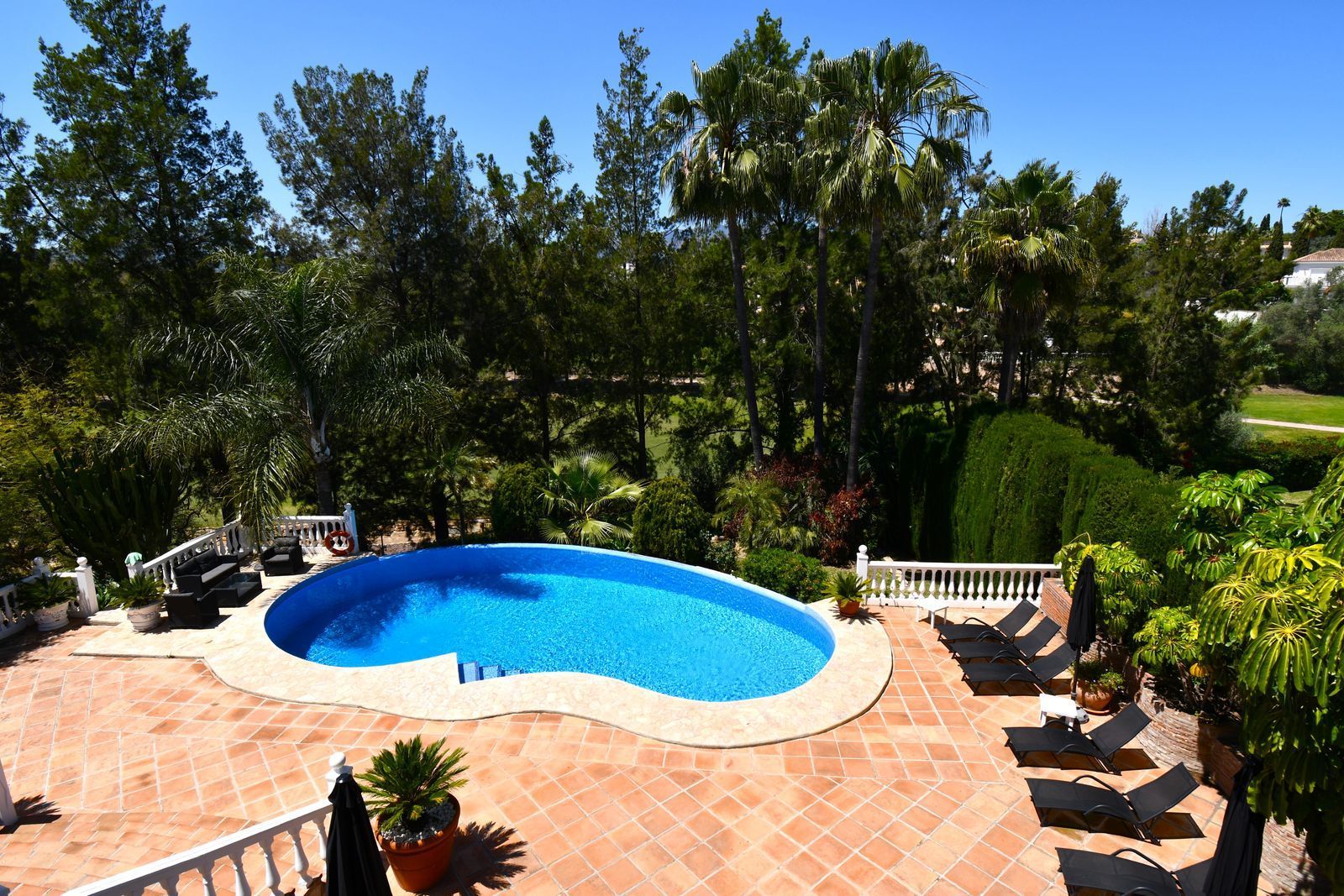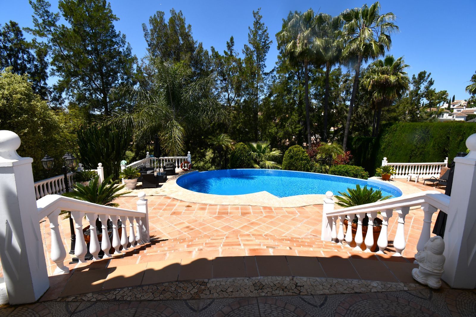 The villa is in the sort after area of Mijas Golf and has views of the beautiful Mijas Mountains.  The gardens surround the villa offering plenty of outside space.  There is a large terrace overlooking the pool.  This terrace offers plenty of seating and a BBQ area.  From the terrace, a staircase takes you down to the lower terrace and the pool area.  The pool is heated, so ideal for the cooler months.  The terrace surrounding the pool is made up of a large sunbathing area, as well as seating areas.  Ideal to just relax and unwind.   From this level you will find stairs taking you down to the lawned garden.  Tropical plants and fruit trees complete this outdoor paradise.